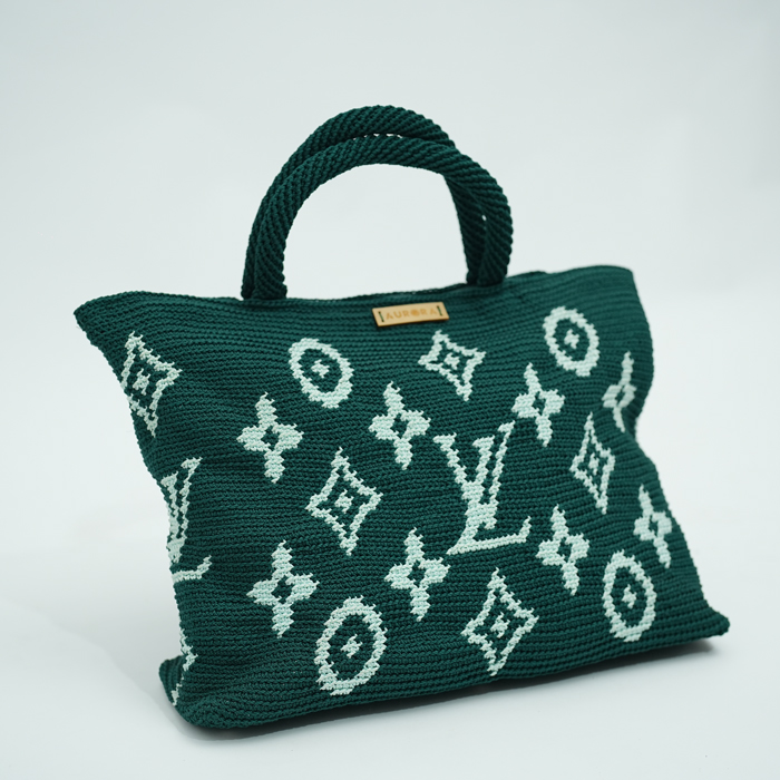 Tas ini dibuat sebagai versi rajut dari tas bermotif branded — tampil unik, elegan, dan tetap stylish dengan sentuhan handmade.