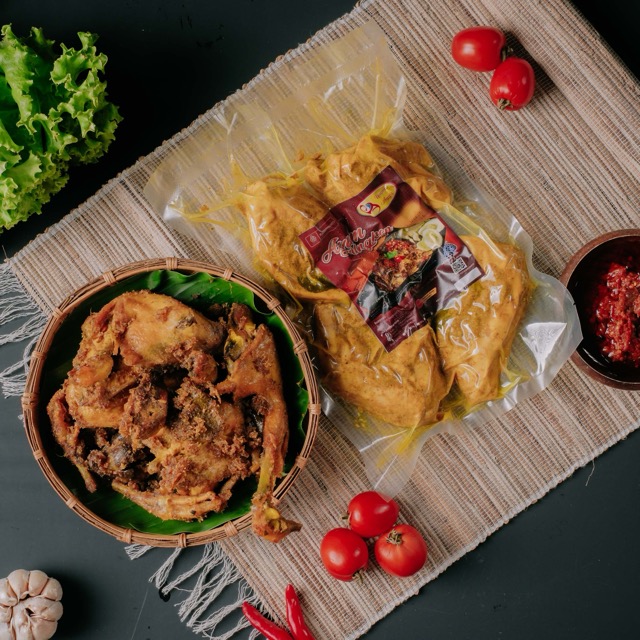 Kandungan Bahan: Ayam kampung pejantan 1 ekor, lengkuas, kunyit, jahe, sereh, kelapa, garam, gula