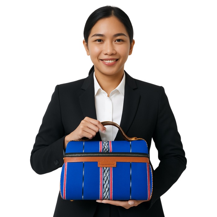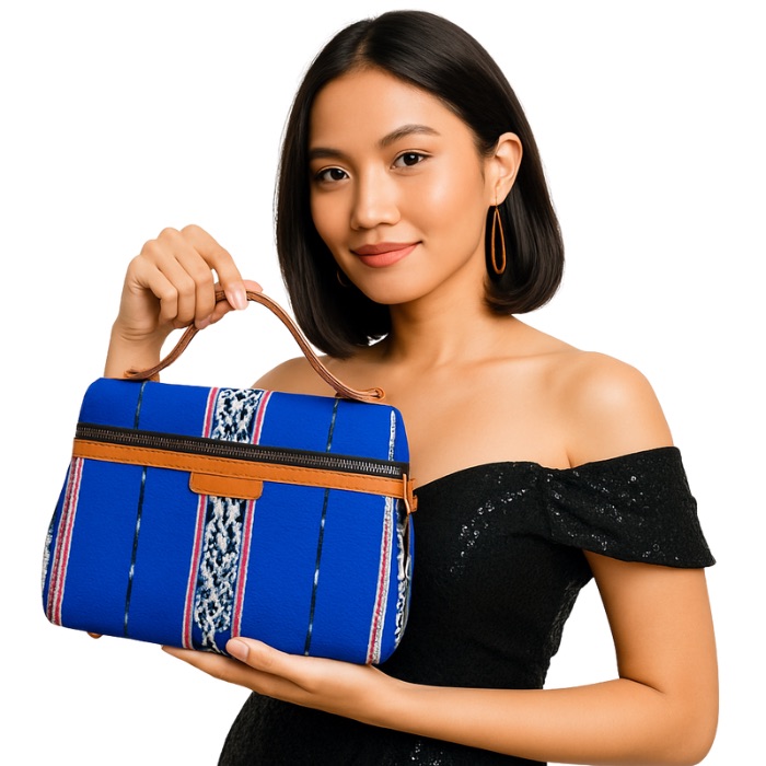 Handbag Tenun Biru adalah sebuah karya seni yang lebih dari sekadar aksesori wanita, namun handbag ini membawa cerita dan jiwa dari kepulauan rempah-rempah. Dibuat dari kain tenun Tanimbar tradisional Maluku, tas ini menampilkan motif dan warna yang kaya, terinspirasi dari laut yang biru dan budaya Maluku. Proses pembuatannya sangat istimewa. Para penenun perempuan di Maluku, yang mewarisi keahlian menenun secara turun-temurun, menghabiskan waktu berminggu-minggu untuk menenun selembar kain tenun dengan menggunakan benang alami dan pewarna tradisional, menciptakan pola-pola geometris yang unik dan penuh makna.
