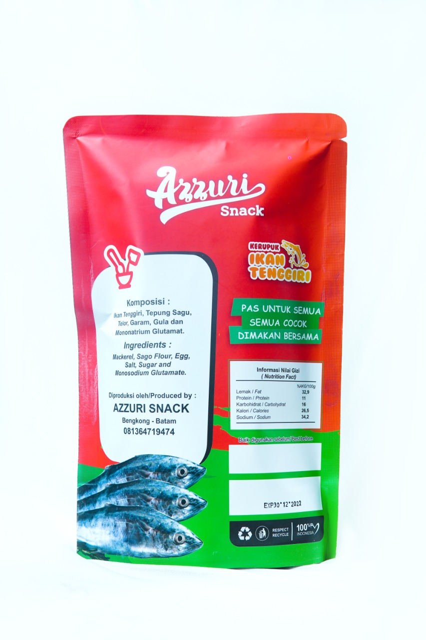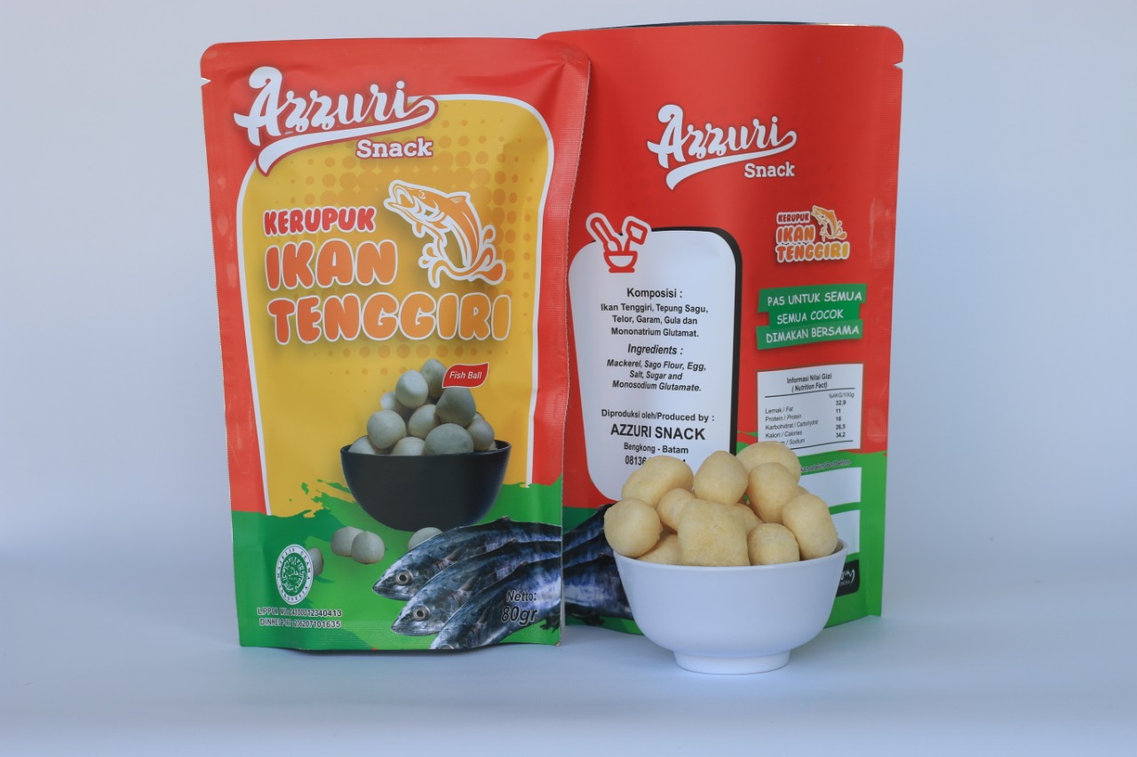 | Kepulauan Riau dengan hamparan laut yang luas mempunyai keragaman biota laut yang sangat indah dengan beragam ikan yang khas seperti Ikan Tenggiri. Dari kekayaan laiut Azzuri mengoilah ikan tenggiri dengan racikan turun temurun menjadi kerupuk ikan tenggiri Azzuri yang gurih dan nikmat mampu disajikan untuk menenai aktifitas rutin |