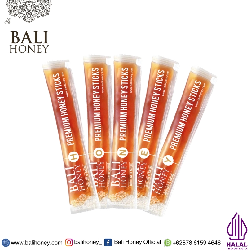 Bali Honey premium honey stick sangat disukai oleh anak-anak dan sangat sehat untuk di komsumsi setiap hari. Berasal dari 5 nektar bunga yang berbeda (Acacia, Cashew, Rambutan, Coffee dan Randu) yang cocok digunakan sebagai pemanis teh dan segala macam jus. Praktis dan mudah dibawa bepergian. Didalam 1 box berisi 10 sachet x 12 gram.