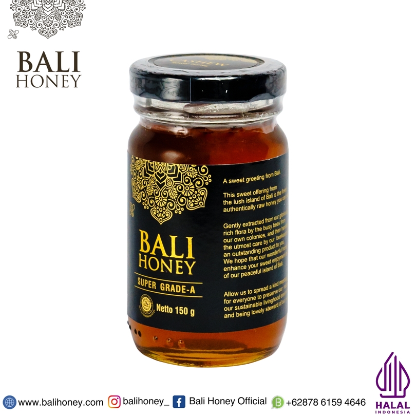 Bali Honey adalah madu yang dipanen dari lebah milik keluarga sendiri yang terpelihara kesehatannya, ditempatkan pada area vegetasi minimum 5 km dari jalan raya atau pusat polusi baik udara maupun suara, dipastikan lebah menghisap nektar asli dari bunga yang tumbuh subur alami tanpa penyemprotan kimia atau GMO dalam bentuk apapun.