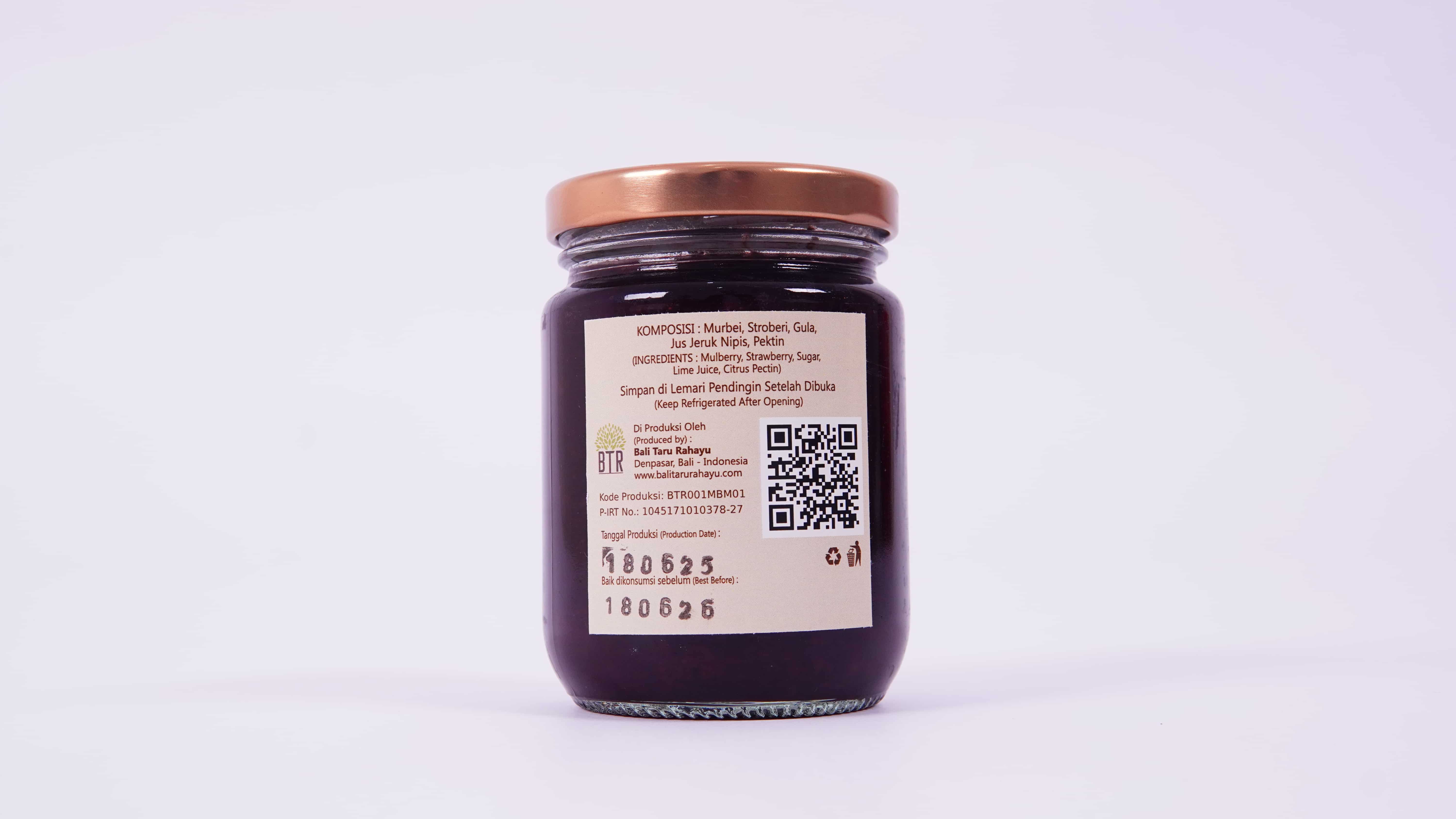 Kandungan Bahan: Mulberry, stroberi, gula, air jeruk nipis, pektin jeruk