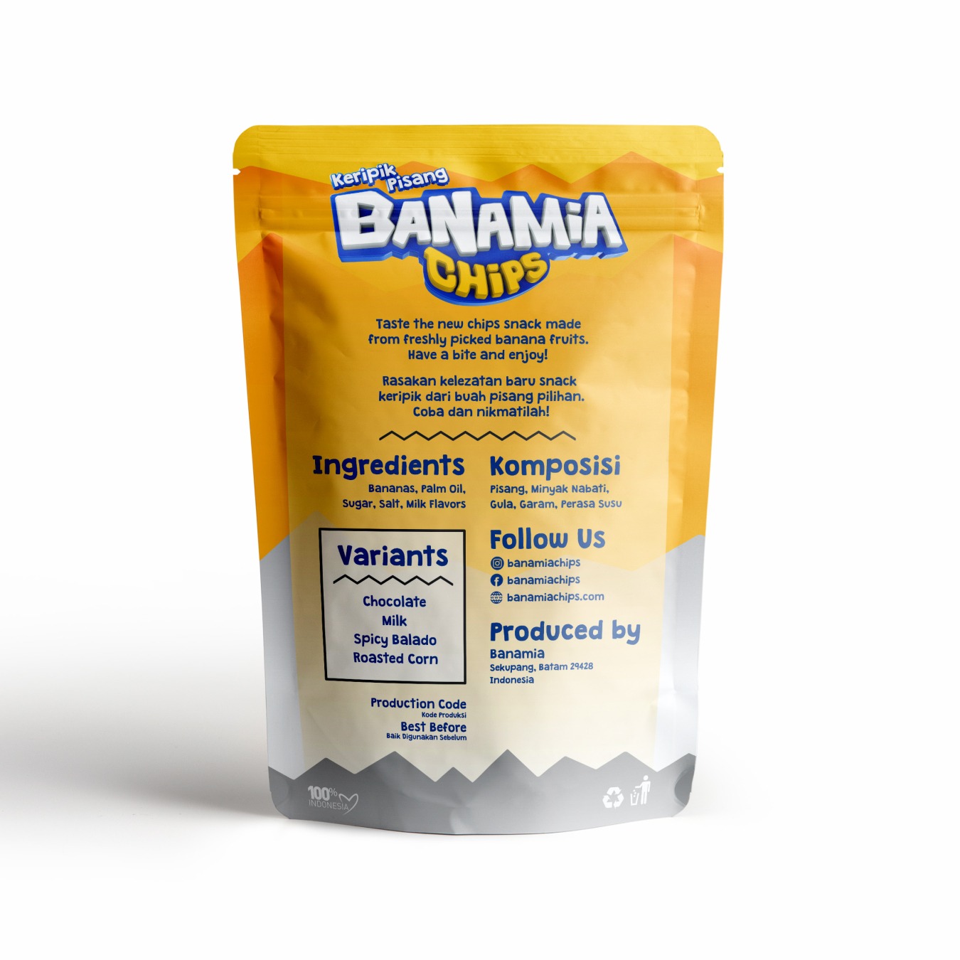 Banamia adalah produsen keripik pisang yang berasal dari Kota Batam. Usaha ini didirikan dengan tujuan utama untuk menciptakan produk makanan ringan yang sehat dan lezat dengan menggunakan bahan lokal. Banamia menawarkan keripik pisang berbagai varian rasa yang tak terlupakan, mulai dari cokelat, susu, pedas balado, hingga jagung bakar. Keripik pisang buatan Banamia menjadi favorit di kalangan anak-anak dan generasi muda. Dengan dedikasi terhadap kualitas, nutrisi, dan keberlanjutan, Banamia terus berkembang sebagai produsen keripik pisang yang menjadi kebanggaan Kota Batam.