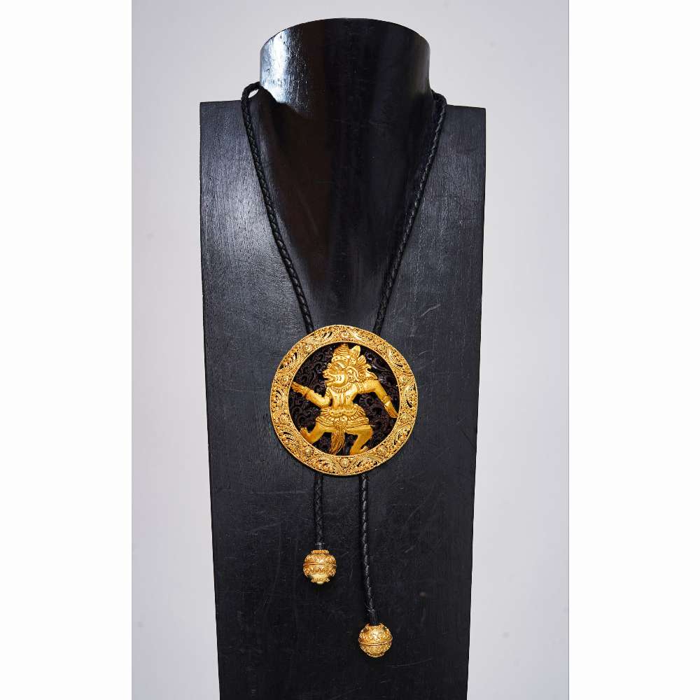 Jenis Bahan: Tembaga di gold plated 22k, batok kelapa dan kulit domba untuk bahan kalung