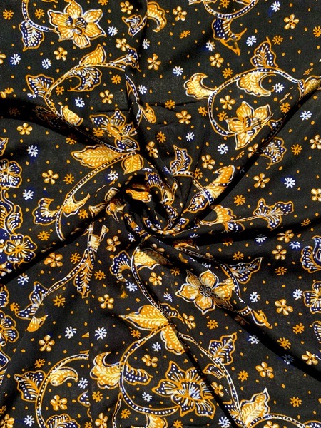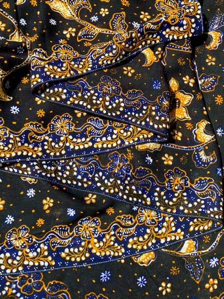 Makna Motif: Sekar Jagad (Bunga Bumi) berisi macam macam flora khas lasem yang melambangkan hubungan yg harmonis antara munusia dan alam. Kombinasi 3 warna biru, kuning, dan hijau botol.