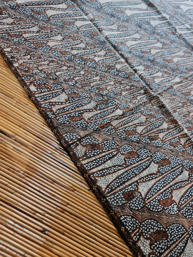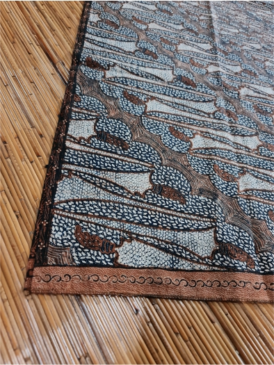 Makna Motif: Batik kreasi baru dengan menyadur ornamen motif parang diisi dengan senjata asli nusantara, yaitu keris