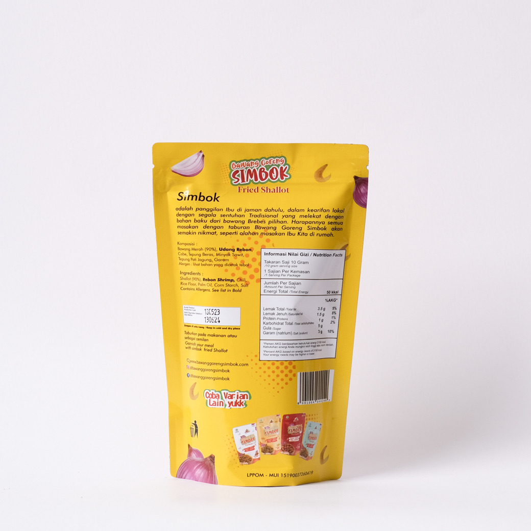 Kami adalah UMKM CV Simbok Berkah Mandiri, yang memproduksi bawang goreng dengan merk Simbok, yang di olah menggunakan bahan baku dari Petani. Bawang Goreng Simbok di olah dari Bawang Merah pilihan, sehingga menghasilkan olahan bawang goreng yang Renyah, berkualitas dan Krispi. Dengan masa simpan 1 tahun dan pemberdayaan perempuan sebagai tenaga kerja. Bawang Goreng Simbok memiliki 5 varian rasa : Original, Pedas Terasi, Udang Rebon, Teri Medan, dan Telur Asin. Semua varian rasa di buat dari bahan2 alami, no perasa sintetik.