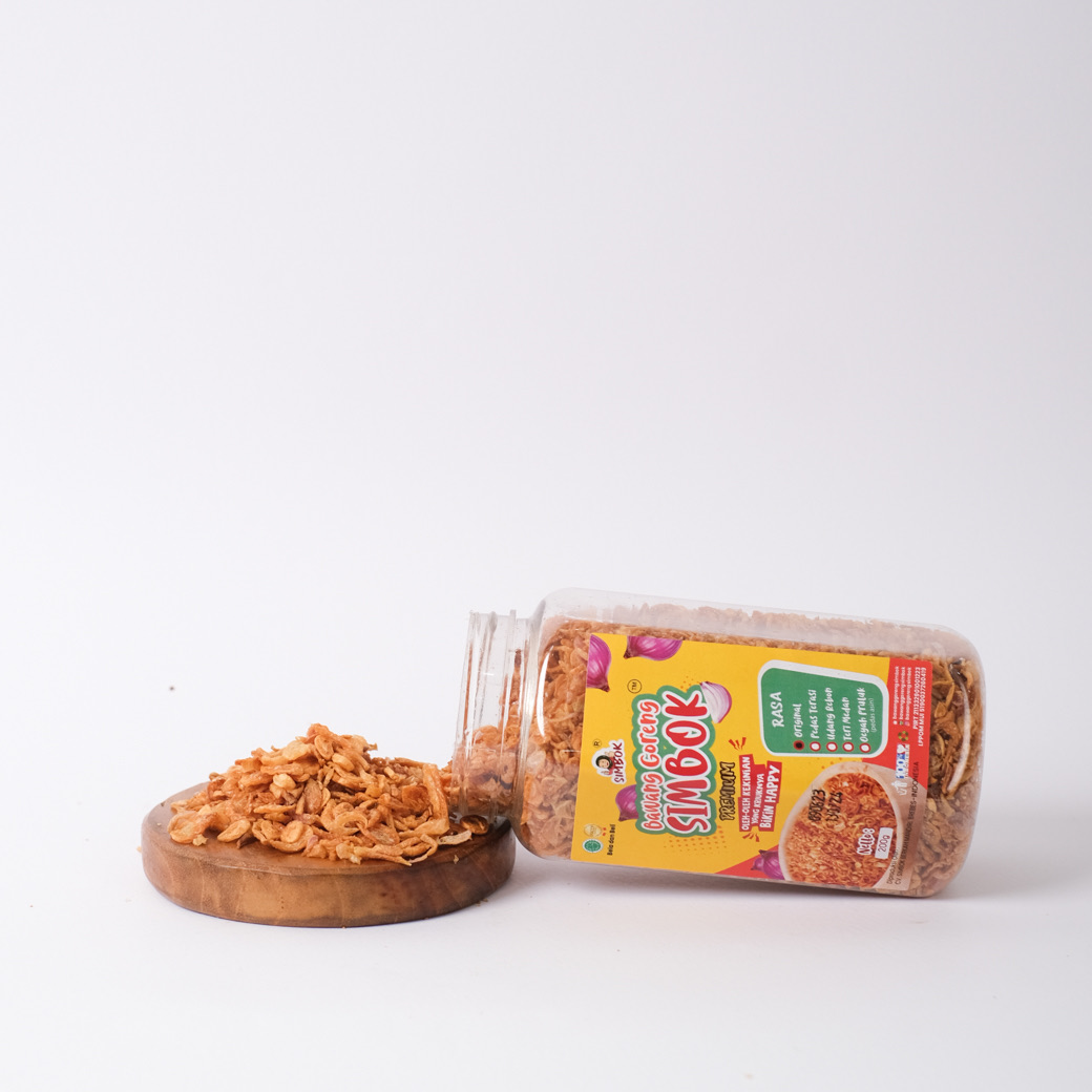 Kami adalah UMKM CV Simbok Berkah Mandiri, yang memproduksi bawang goreng dengan merk Simbok, yang di olah menggunakan bahan baku dari Petani. Bawang Goreng Simbok di olah dari Bawang Merah pilihan, sehingga menghasilkan olahan bawang goreng yang Renyah, berkualitas dan Krispi. Dengan masa simpan 1 tahun dan pemberdayaan perempuan sebagai tenaga kerja. Bawang Goreng Simbok memiliki 5 varian rasa : Original, Pedas Terasi, Udang Rebon, Teri Medan, dan Telur Asin. Semua varian rasa di buat dari bahan2 alami, no perasa sintetik.