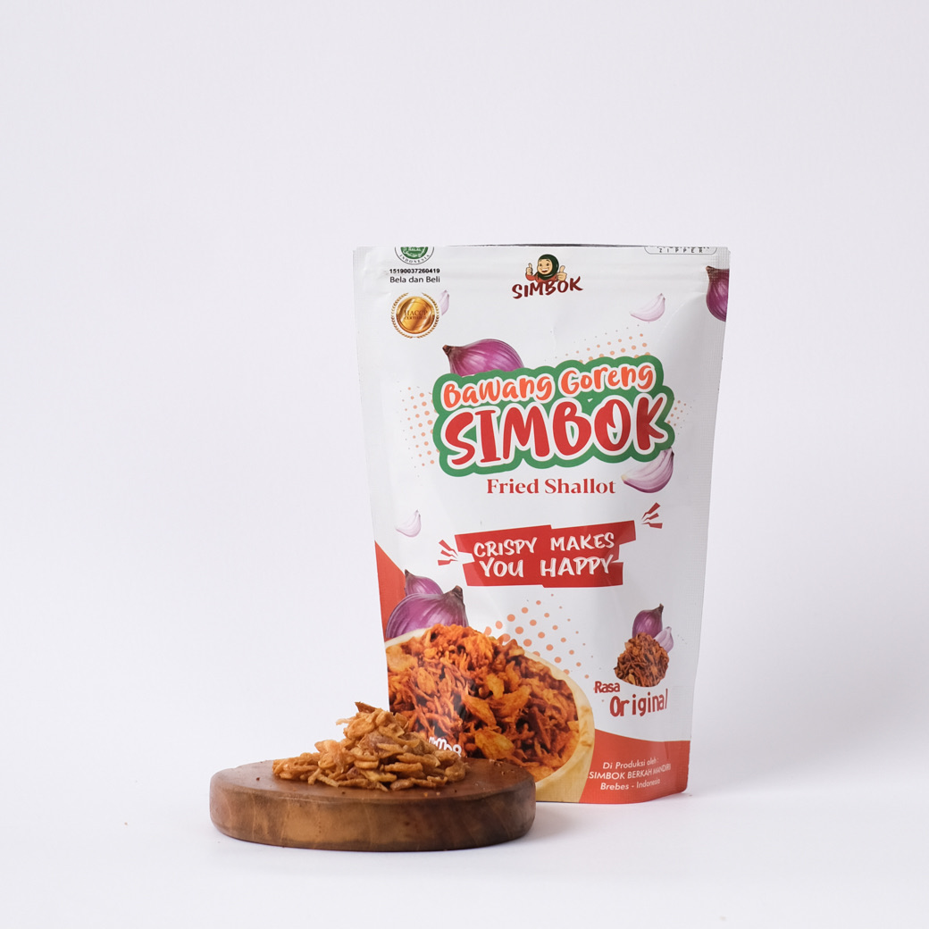Kami adalah UMKM CV Simbok Berkah Mandiri, yang memproduksi bawang goreng dengan merk Simbok, yang di olah menggunakan bahan baku dari Petani. Bawang Goreng Simbok di olah dari Bawang Merah pilihan, sehingga menghasilkan olahan bawang goreng yang Renyah, berkualitas dan Krispi. Dengan masa simpan 1 tahun dan pemberdayaan perempuan sebagai tenaga kerja. Bawang Goreng Simbok memiliki 5 varian rasa : Original, Pedas Terasi, Udang Rebon, Teri Medan, dan Telur Asin. Semua varian rasa di buat dari bahan2 alami, no perasa sintetik.