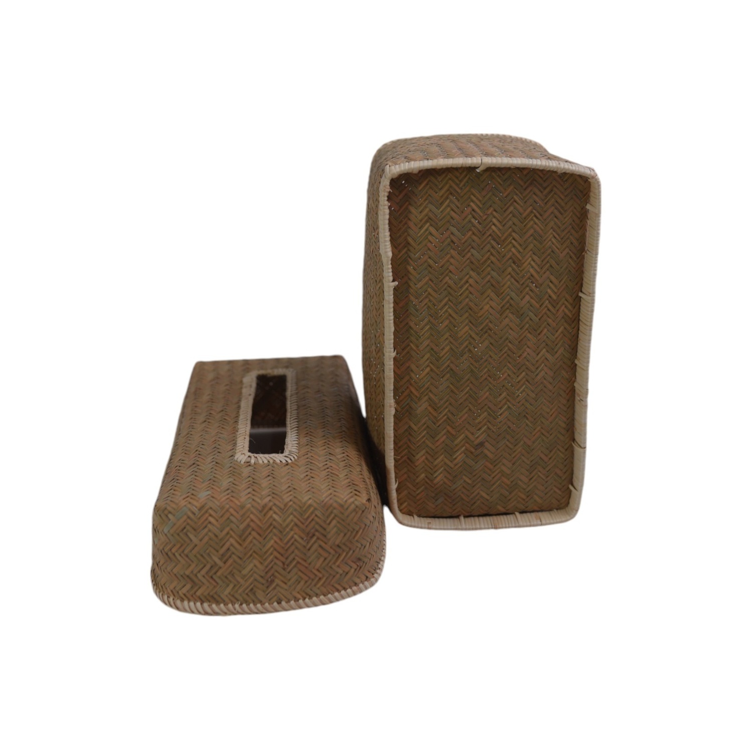 Setiap Bili Tissue Box sepenuhnya ditenun dengan tangan oleh pengrajin terampil dari Aceh. Dedikasi mereka tercermin dalam setiap detail, menjamin presisi, kualitas, dan daya tahan produk yang tinggi. Kami bangga menggunakan material lokal berkualitas tinggi yang diproses dengan cermat: