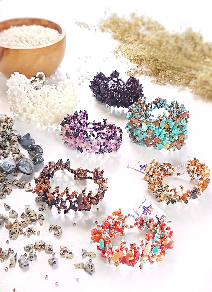handmade (kerajinan glassbead seperti : home decor,tas, dompet, kalung, gelang, ikat pinggang serta aksesoris lainnya) dan perdagangan souvenir (Aksesoris Art Shop) yang berdiri sejak tahun 2003 di kota Banyuwangi. Kami memiliki Pengrajin yang tersebar sebagian
