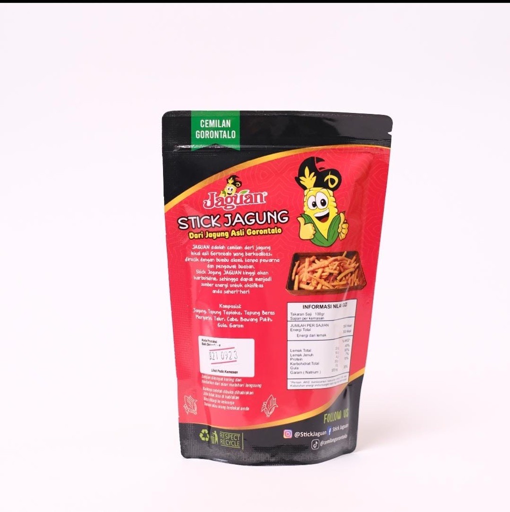 Jaguan adalah camilan dari Jagung lokal asli Gorontalo yang berkualitas, diracik dengan bumbu alami tanpa pewarna dan pengawet buatan. Stick Jagung Jaguan tinggi akan karbohidrat, sehingga dapat menjadi sumber energi untuk aktifitas anda sehari-hari.