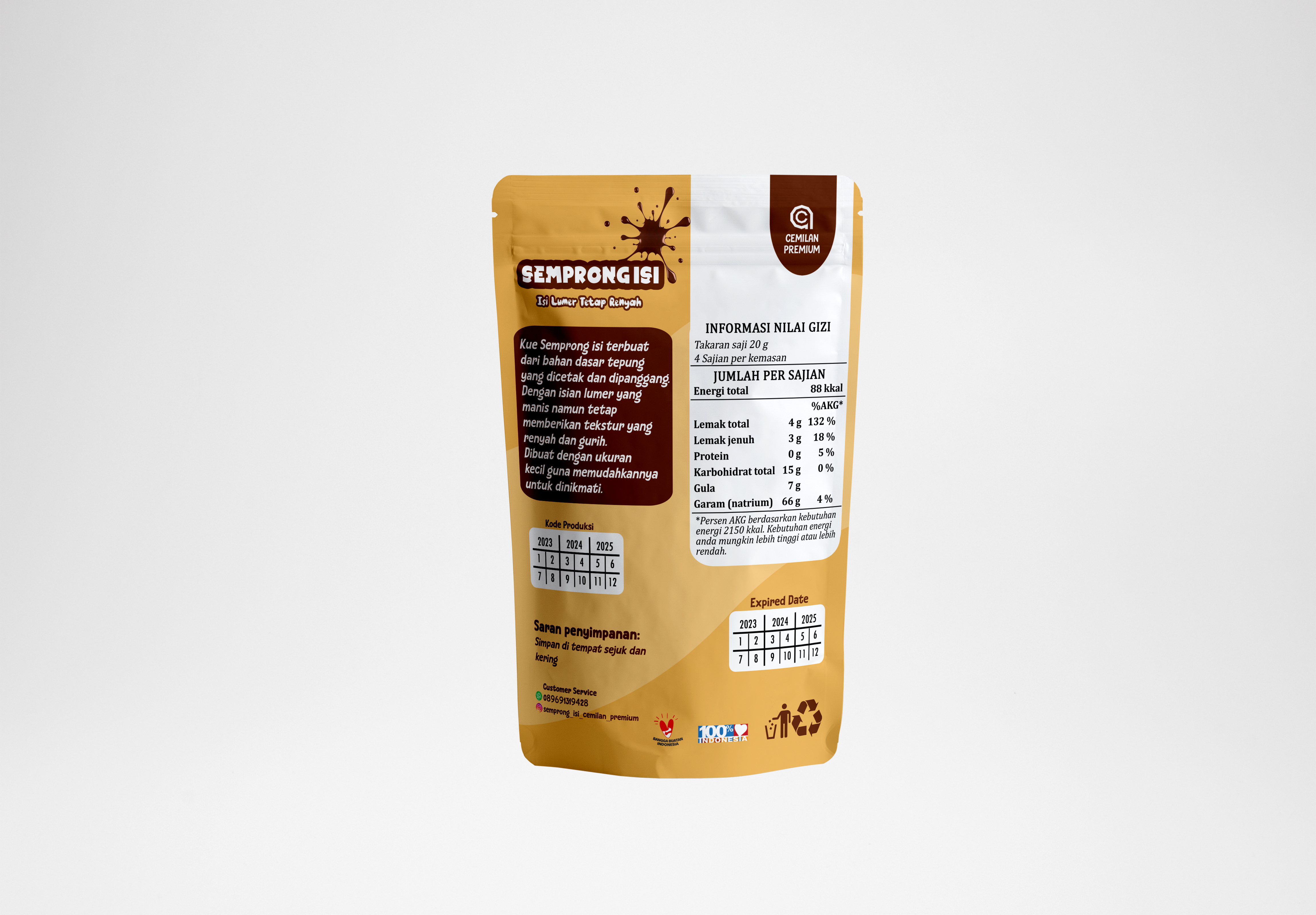 Cemilan Premium merupakan usaha yang bergerak di bidang kuliner/makanan ringan, produk saya yakni semprong isi, semprong isi merupakan olahan kue semprong yang disajikan dengan isian manis lumer sehingga memberikan perpaduan cita rasa kekinian namun tetap mempertahankan ciri khas kue semprong tradisional, semprong isi memiliki beragam isian antara lain, Coklat, Tiramisu, Cappucino, Vanilla, Keju, Strawberry dan original.