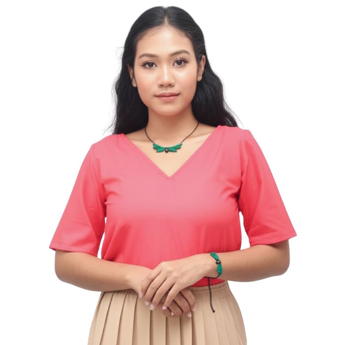 Kalung ini dibuat dengan teknik macrame menggunakan benang polyester dan batu alam pilihan. Desainnya terinspirasi dari bentuk daun sebagai simbol keseimbangan dan kehidupan.