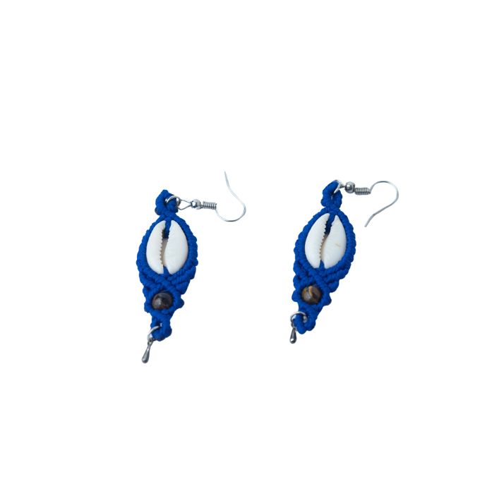 Anting handmade ini dibuat menggunakan teknik macrame dengan perpaduan unik antara kerang laut asli dan batu alam pilihan. Tali yang disiapkan dirangkai secara manual dengan pola simpul yang membingkai kerang dan batu secara harmonis.