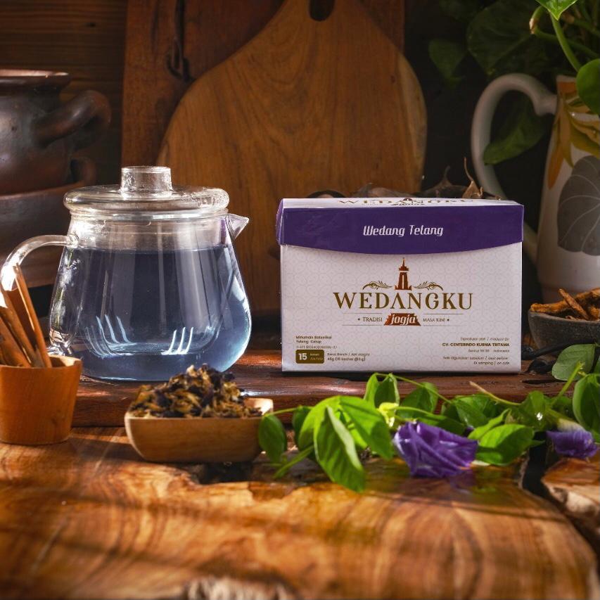 Seperti birunya bunga telang, telang celup WEDANGKU menyajikan minuman khas berwarna biru dan memberikan rasa yang nikmat ketika diseduh. Tanaman rambat yang mudah ditemukan di pekarangan ini bunganya telah diolah menjadi minuman yang nikmat hadir bersama sensasi segar jeruk nipis