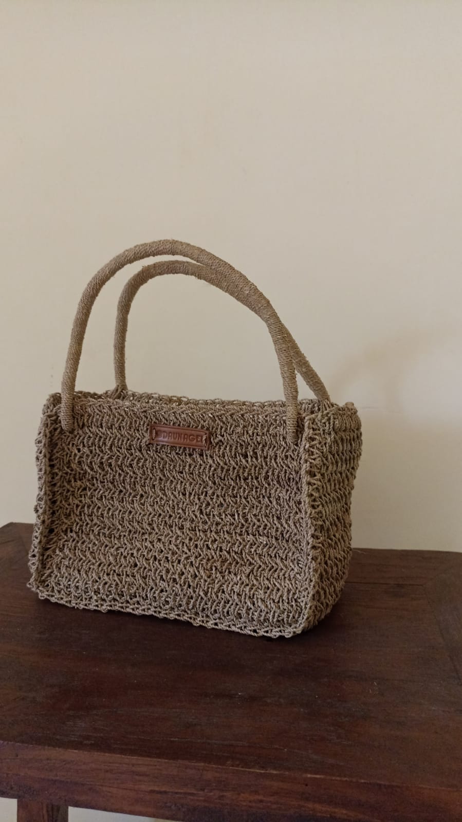Tas handmade yang terbuat dari bahan natural, berbentuk kotak. Cocok digunakan untuk pesta dan jalan jalan.