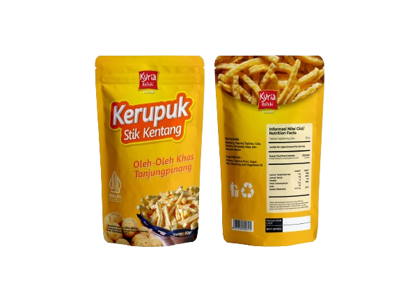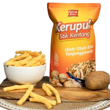 Produk makanan ringan/kerupuk yang dibuat dari bahan utama nya kentang yang di campur dengan tepung tapioka, air dan bahan tambahan pangan lain yang bersertifikasi halal dan melaui proses penggorengan.