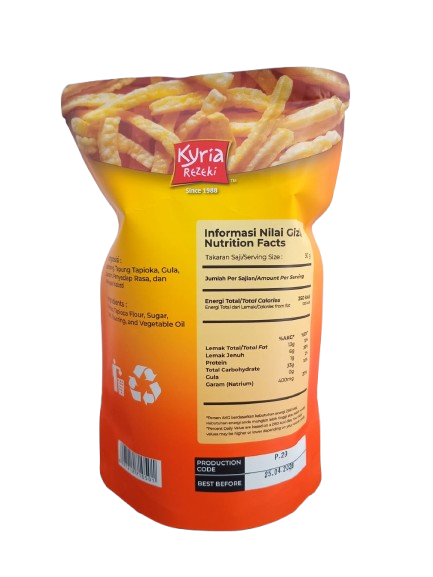 Kandungan Bahan: Kentang, Tepung Tapioka, Telur, Gula, Garam, Penyedap Rasa, Minyak Goreng Nabati
