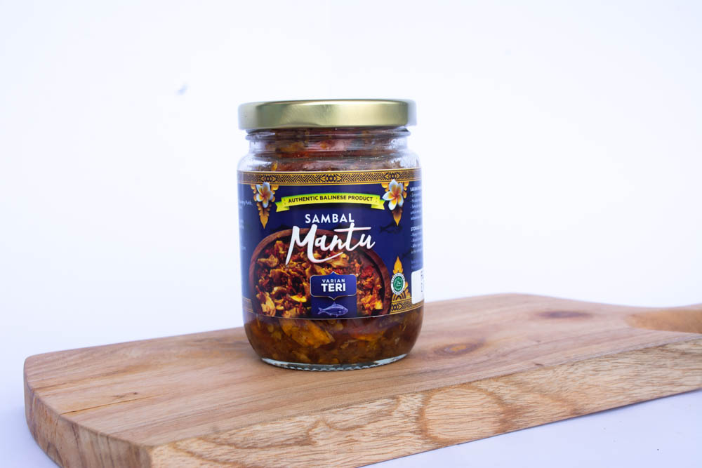 Sambal Mantu Varian Teri Original memiliki level pedas STANDAR (tidak terlalu pedas) dengan campuran Teri Crispy di dalamnya. Diproduksi secara modern dengan menggunakan bahan-bahan berkualitas dan resep tradisional khas Bali. Dikemas dengan menggunakan botol kaca. Cocok digunakan sebagai salah satu oleh-oleh khas Bali, bisa juga digunakan pada saat traveling, ibadah haji, perjalanan dinas dan lain-lain.