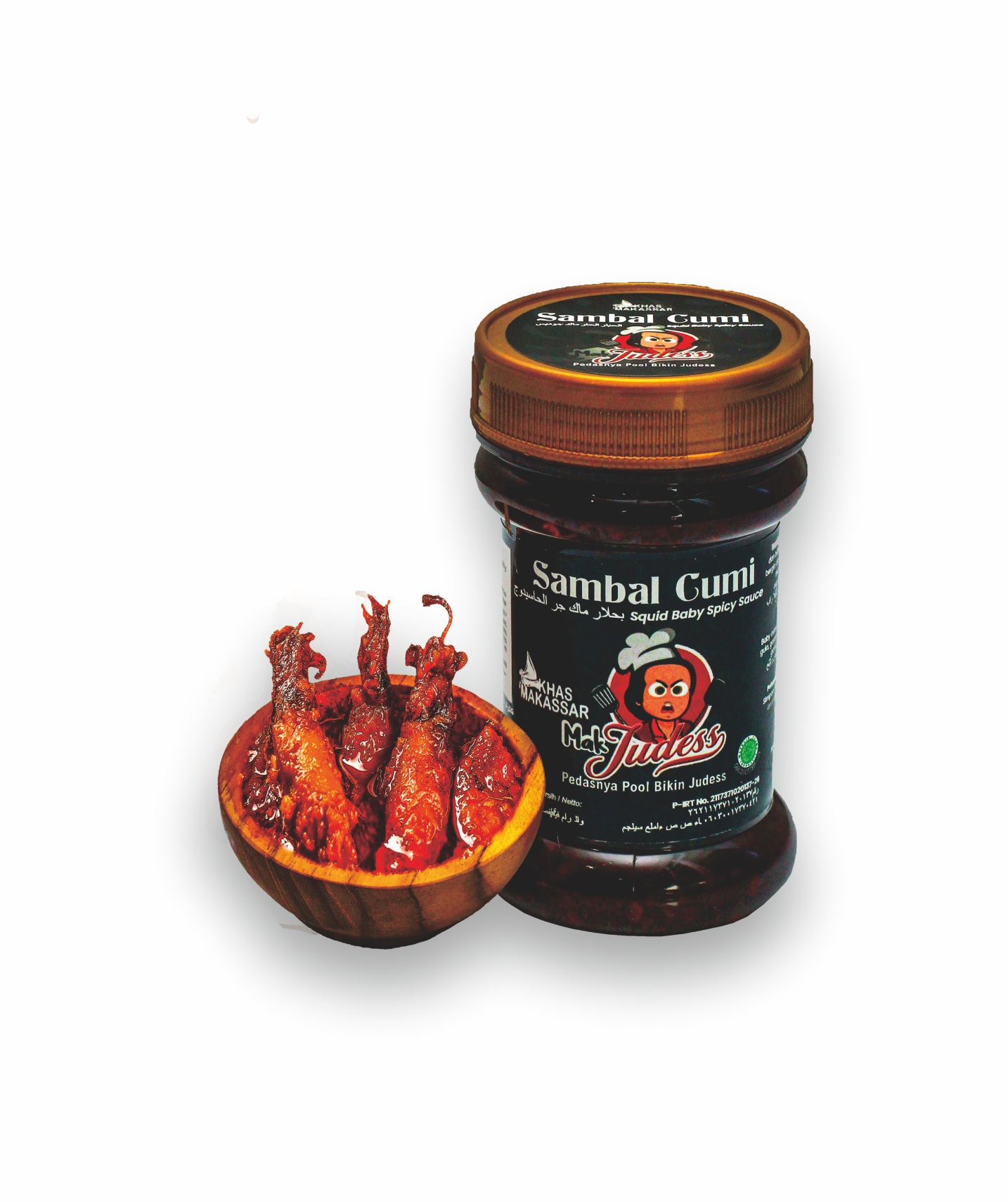 Dibuat dari bawang segar, cabai merah berkualitas, dan bumbu rempah asli serta tambahan varian cumi. Sambal ini berukuran 150gram dengan kemasan botol yang berkualitas. Produk ini juga tersedia retail modern domestik maupun nasional hingga ekspor