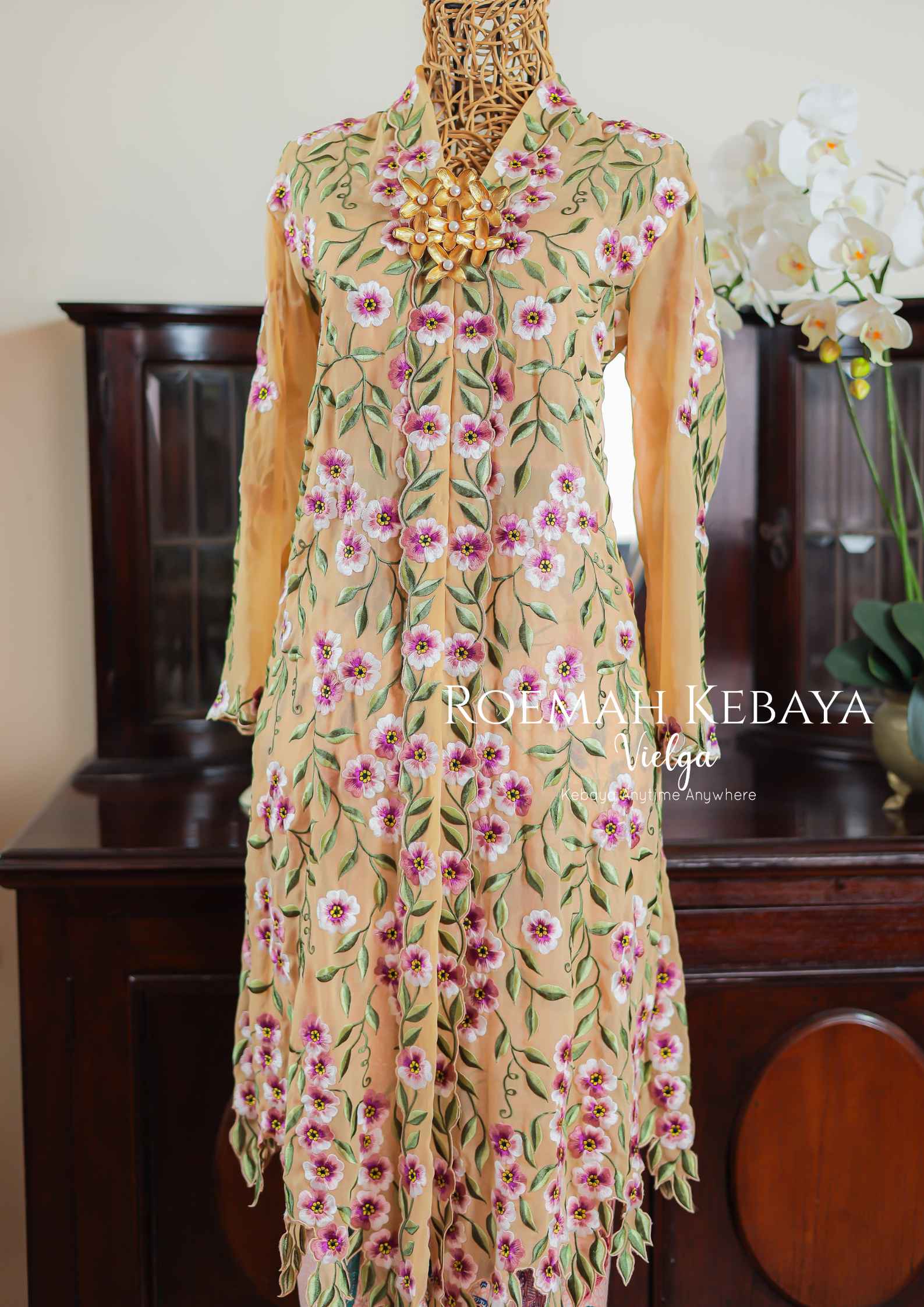 Kebaya Panjang Motif Jasmine Leaf Gold by Roemah Kebaya Vielga