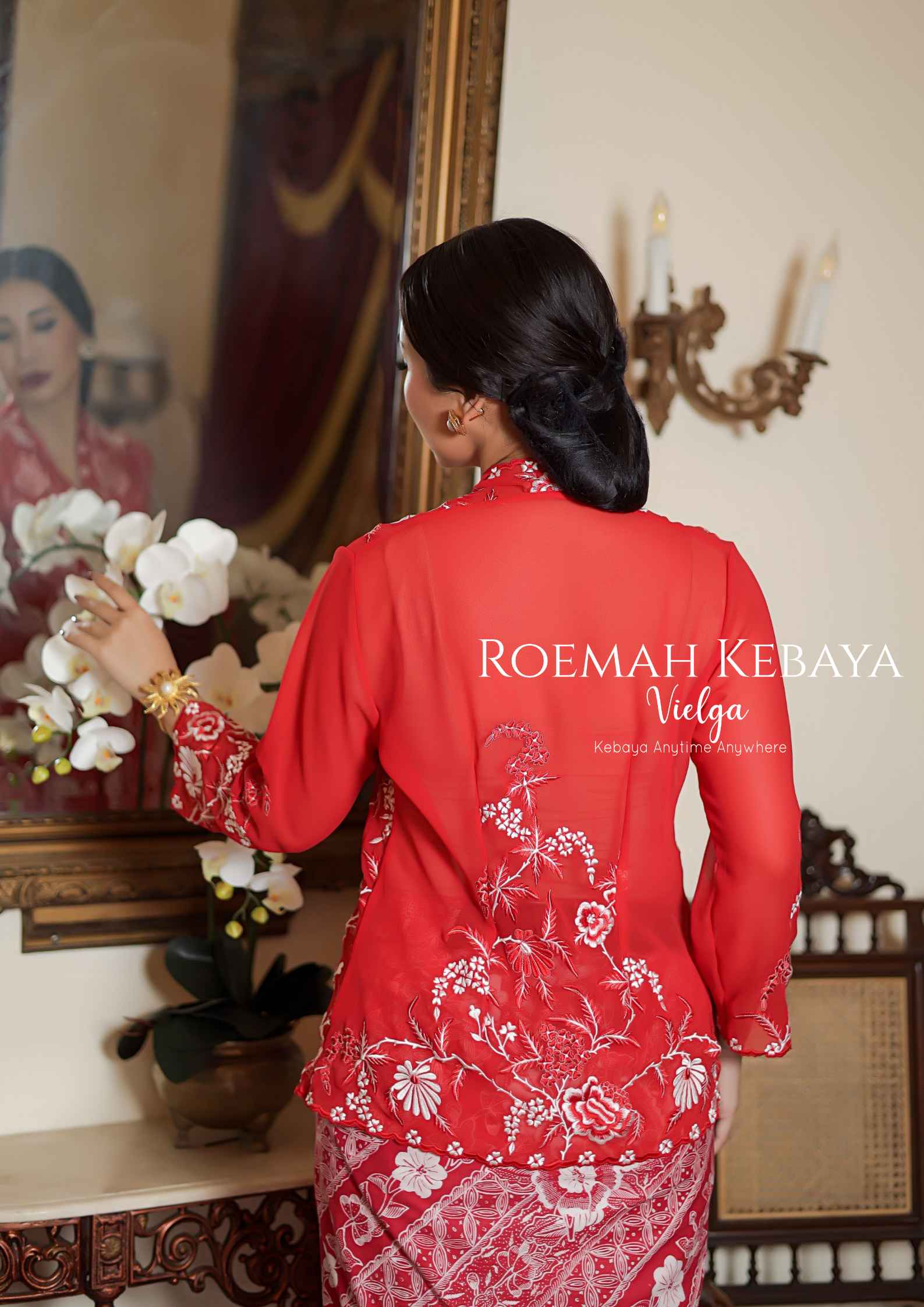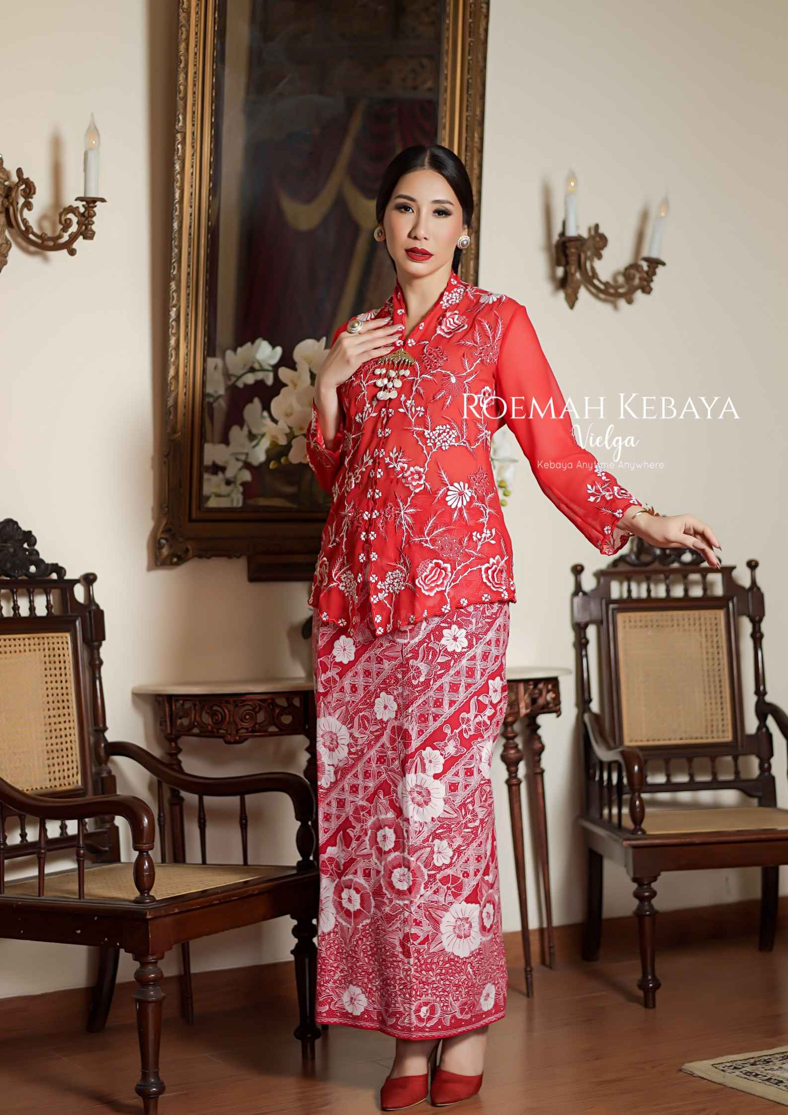 Kebaya Encim Motif Peranakan 2 Merah by Roemah Kebaya Vielga