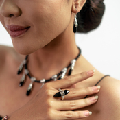 Design ini Terinspirasi dari benda Purbaala yaitu Nakara yang dibalut dengan ragam hiasan / ukiran bali serta taburan emas 18k dan di kombinasi dengan Permata Oxyr terkesan sangat Menarik
