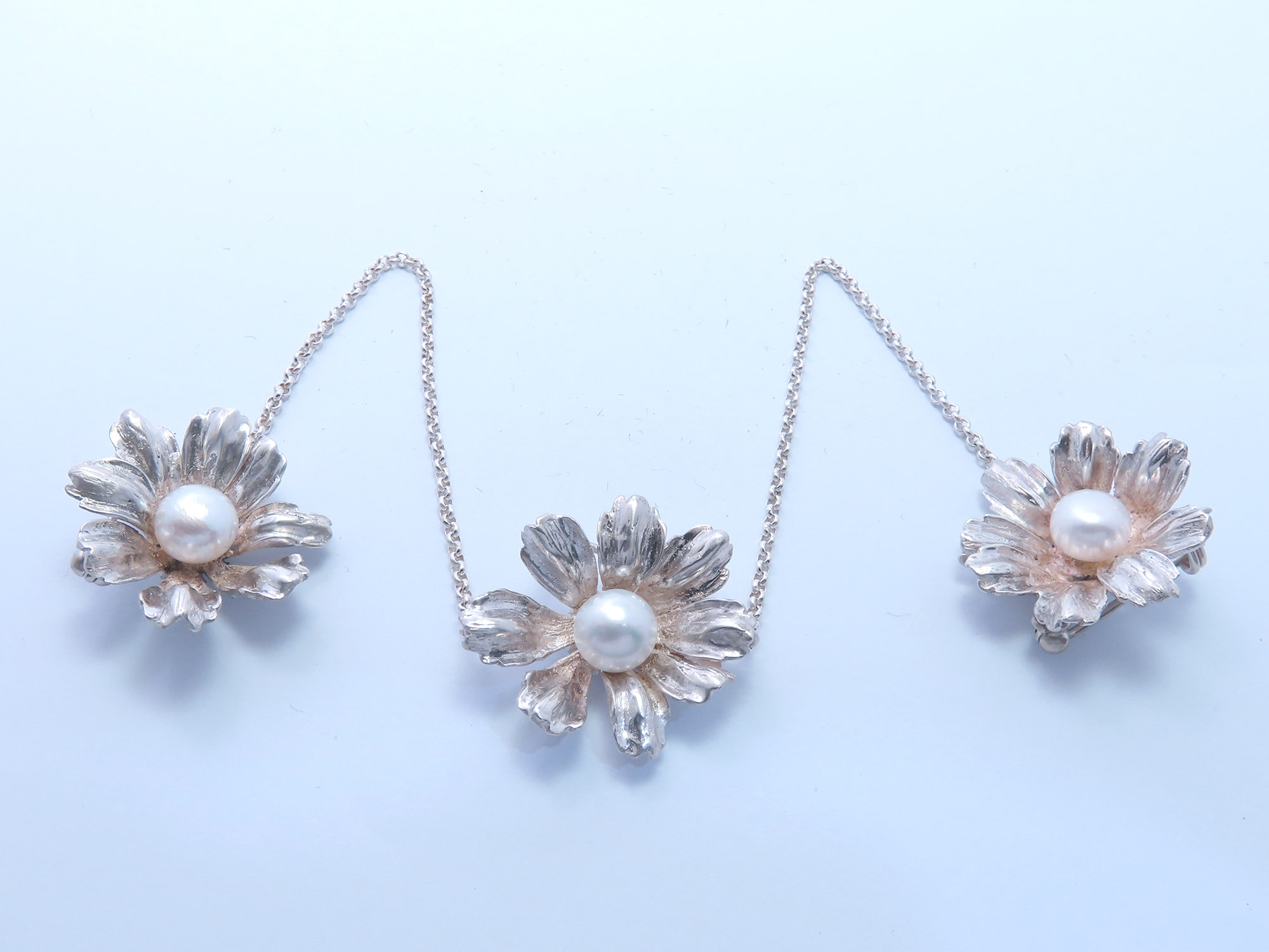 Silver Flower Brooch with White Pearl
