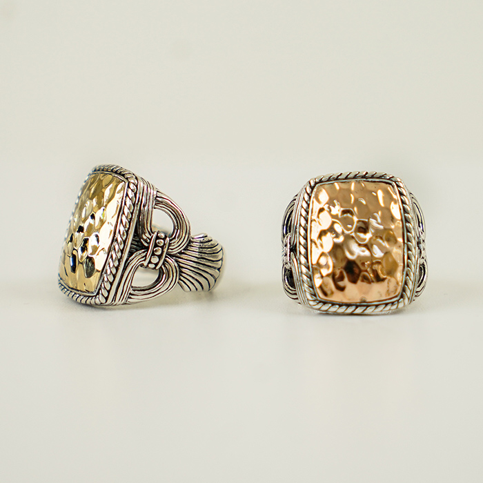 Cincin Pria Perak dengan Tali Perak dengan Motif Palu rose gold 18k