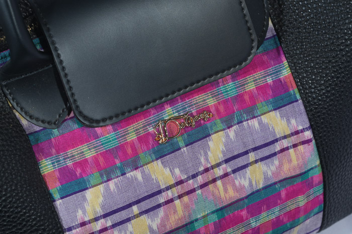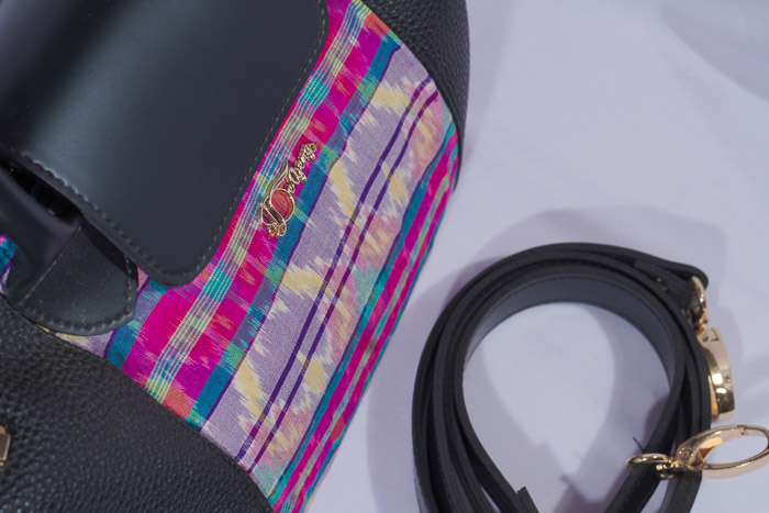 Tote bag terbuat dari bahan kulit sintetis kombinasi tenun tajung dengan bahan inner kain waterproof dan telah dilengkapi dengan tali panjang adjustable