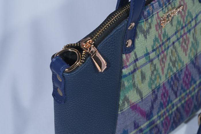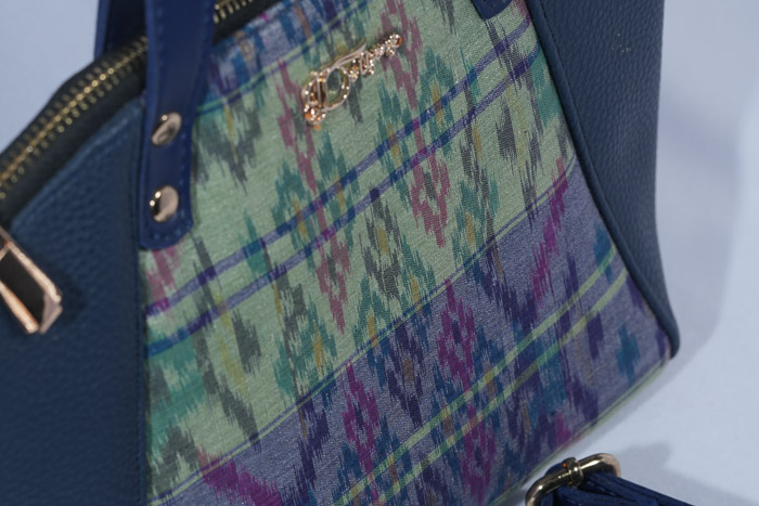 Kamboja bag terbuat dari bahan kulit sintetis kombinasi tenun tajung dengan inner bahan kain waterproof dan telah dilengkapi dengan tali panjang adjustable