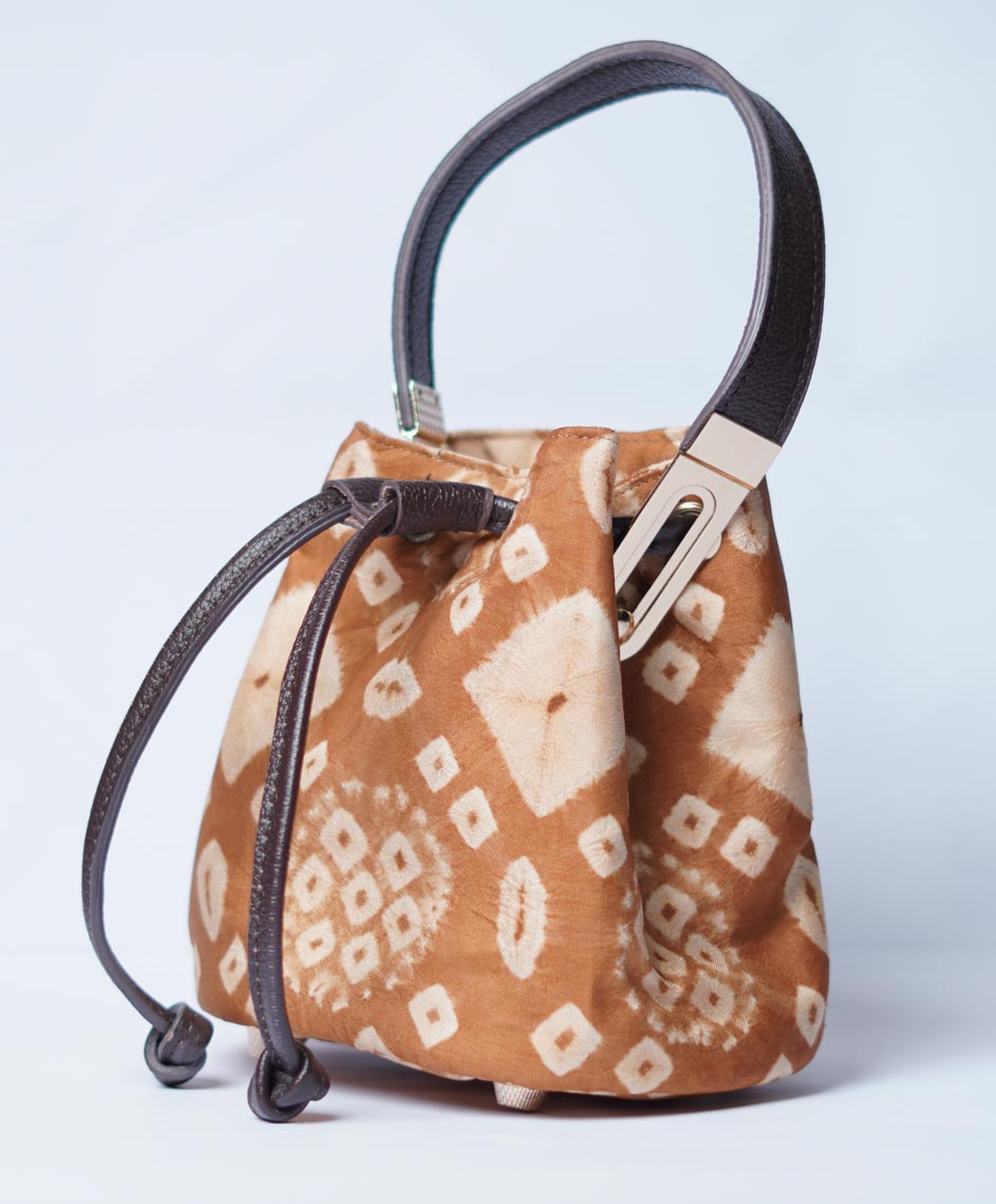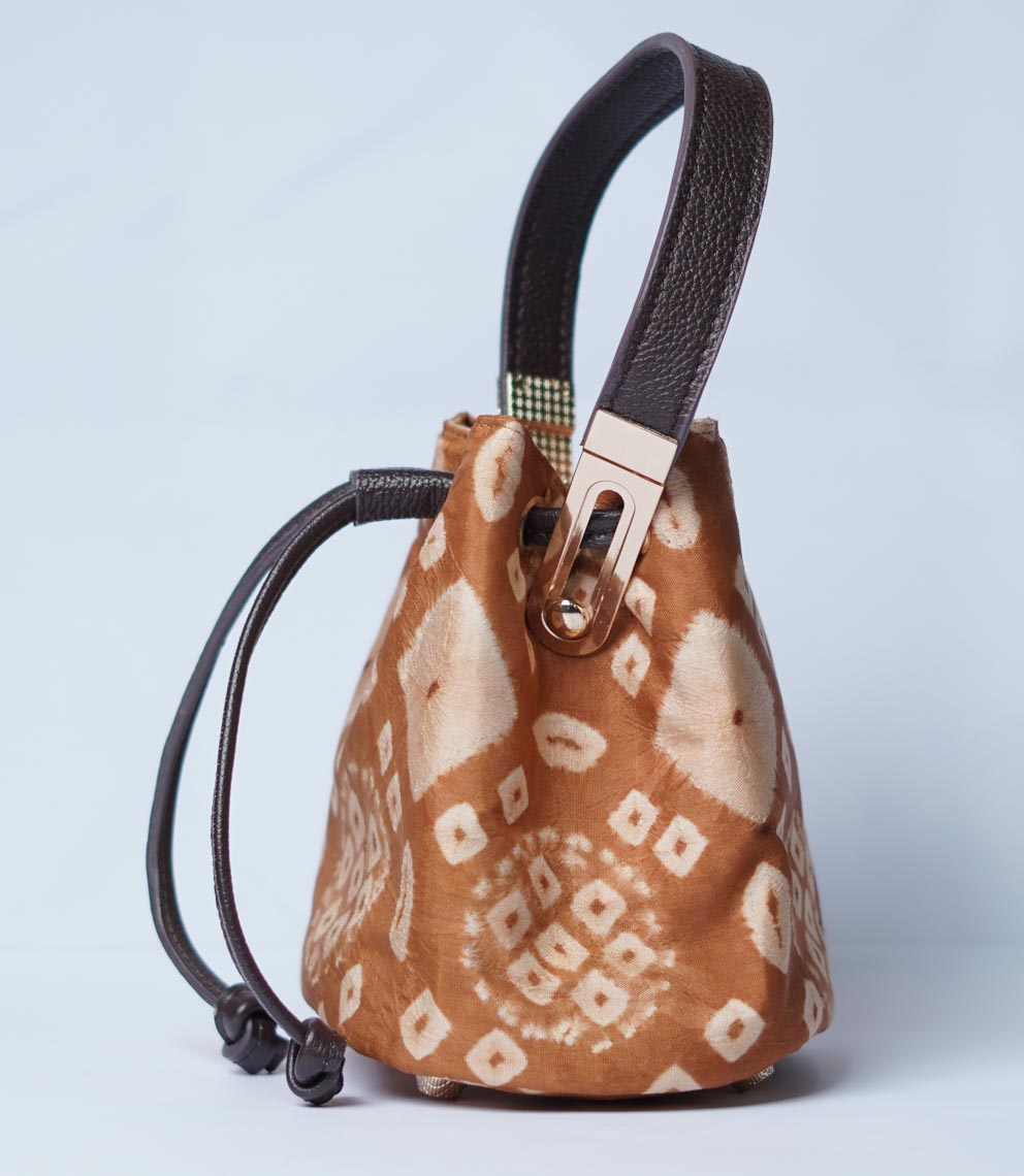 Kain gambo dengan bahan pewarna alam gambir selalu tampil unik dengan warna nya yang natural, di kreasikan menjadi mini bucketbag yang unik sehingga cocok untuk acara kasual atau santai