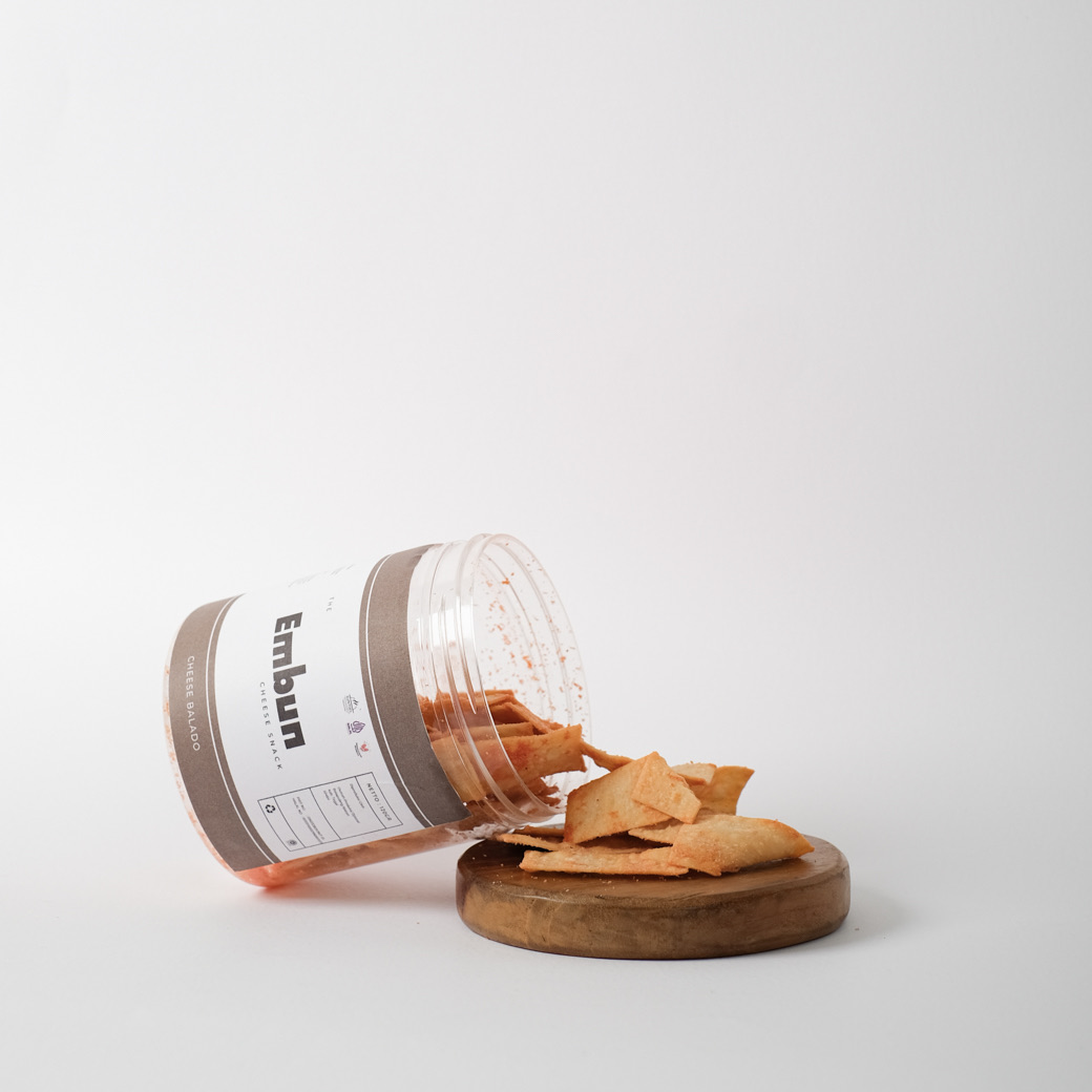 Cheese Balado, di mana keripik singkong diberi bumbu balado yang khas dan dilumuri dengan keju yang lezat. Rasa pedas dan gurih dari bumbu balado dipadukan dengan keju yang meleleh, menciptakan kombinasi yang sempurna bagi pecinta rasa yang kaya.