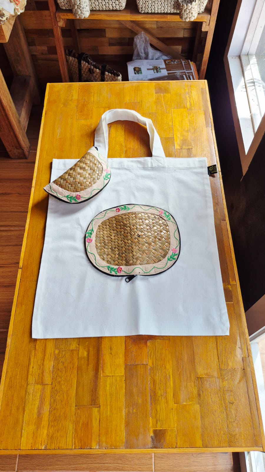Jenis Bahan: Kain Blacu kombinasi Purun Anyam