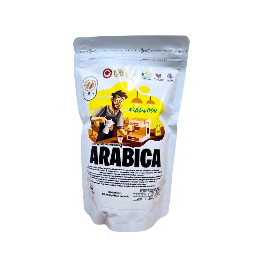 DOA Coffee Hyang Argopuro adalah produsen kopi premium dari kawasan lereng Gunung Argopuro, Jawa Timur. Setiap biji kopi yang dihasilkan dipetik secara selektif dan diolah dengan teknik fermentasi terbaik, mencerminkan dedikasi pada kualitas dan keaslian rasa. Dengan slogan “100% Original Hyang Argopuro”, DOA Coffee menawarkan beragam varian kopi Arabika dan Robusta, mulai dari Arabica Honey, Lactic, Natural, Fullwash, Bluemountain, Wine hingga Excelsa yang khas dan jarang ditemukan.