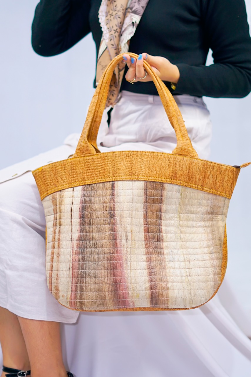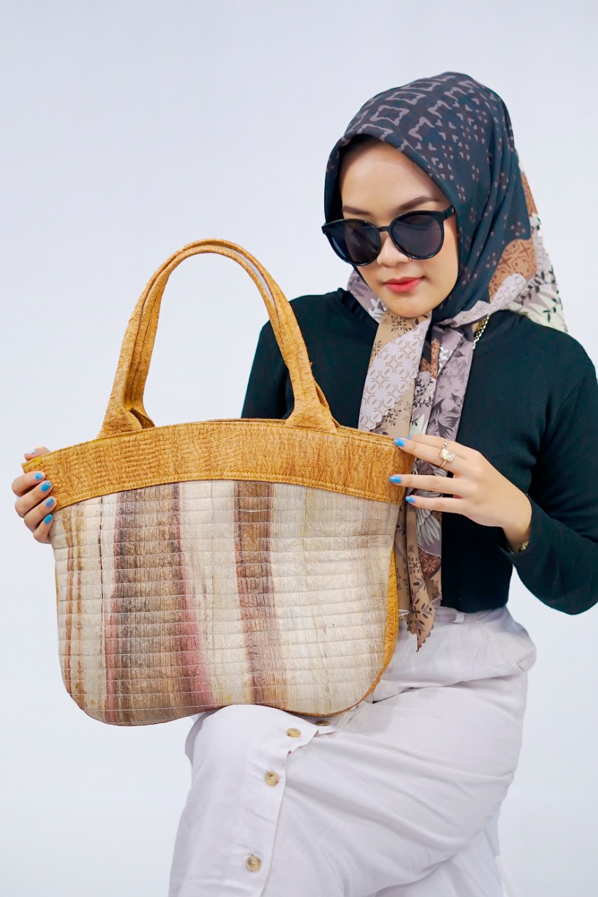 Tas santai wanita dari gedebog pisang yang dikombinasikan dengan kulit kayu lantung