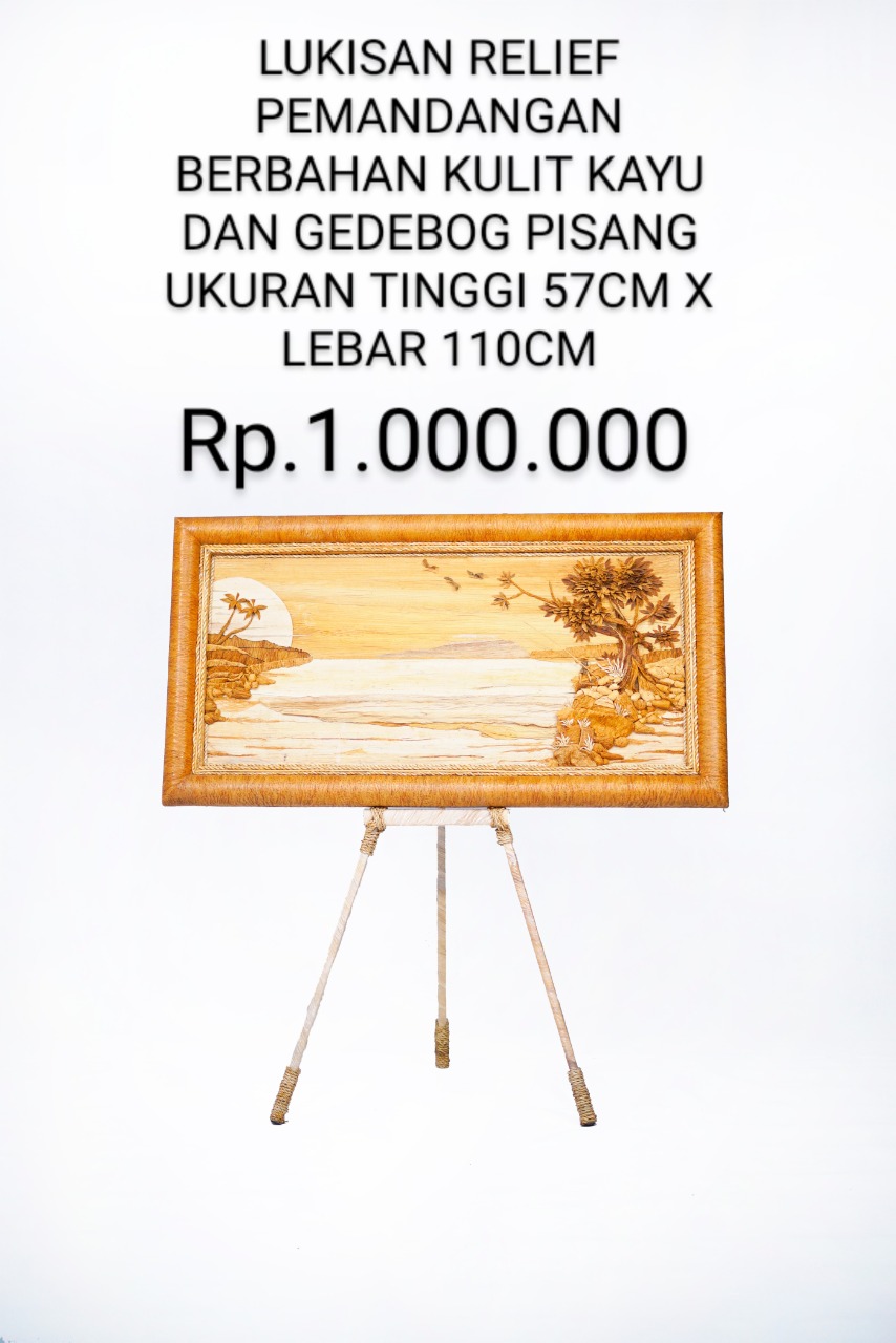 Lukisan relief unik yang dibuat secara handmade dari kayu lantung dan gedebog pisang