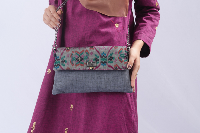 Terbuat dr kain blongket khas Palembang dengan mix kain kanvas goni Tali pjg 105cm dr kain jumputan mix rantai