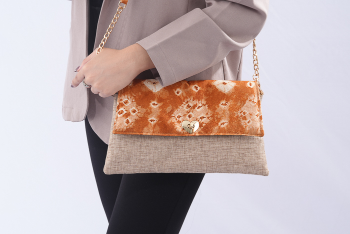 Jenis Bahan: Jumputan dengan pewarna alam Gambo mix kanvas goni
