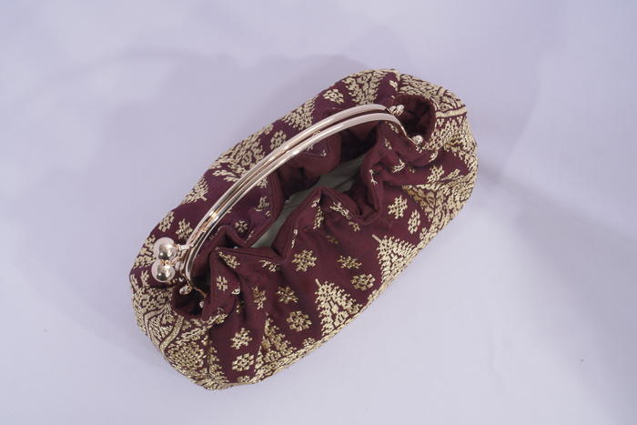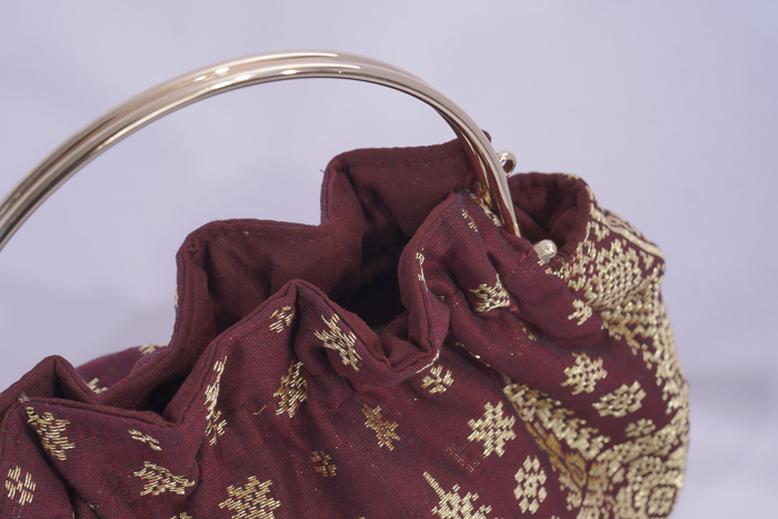 Terbuat dari kain songket asli Palembang, dilengkapi dengan rantai panjang 105cm