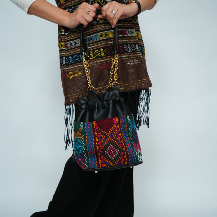 Tas Bucket Tenun adalah tas berbentuk tabung dengan desain modern yang memadukan keindahan kain tenun tradisional Indonesia. Dilengkapi tali serut dan tali selempang yang praktis, tas ini cocok untuk kegiatan sehari-hari maupun acara spesial. Gaya etnik yang kekinian, ringan dibawa, dan penuh nilai budaya.
