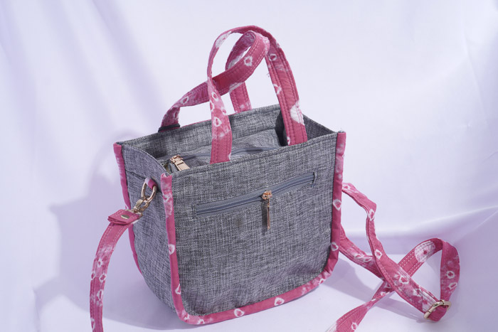 Tas jinjing dari kain semi kanvas kagawa dengan paduan kain jumputan