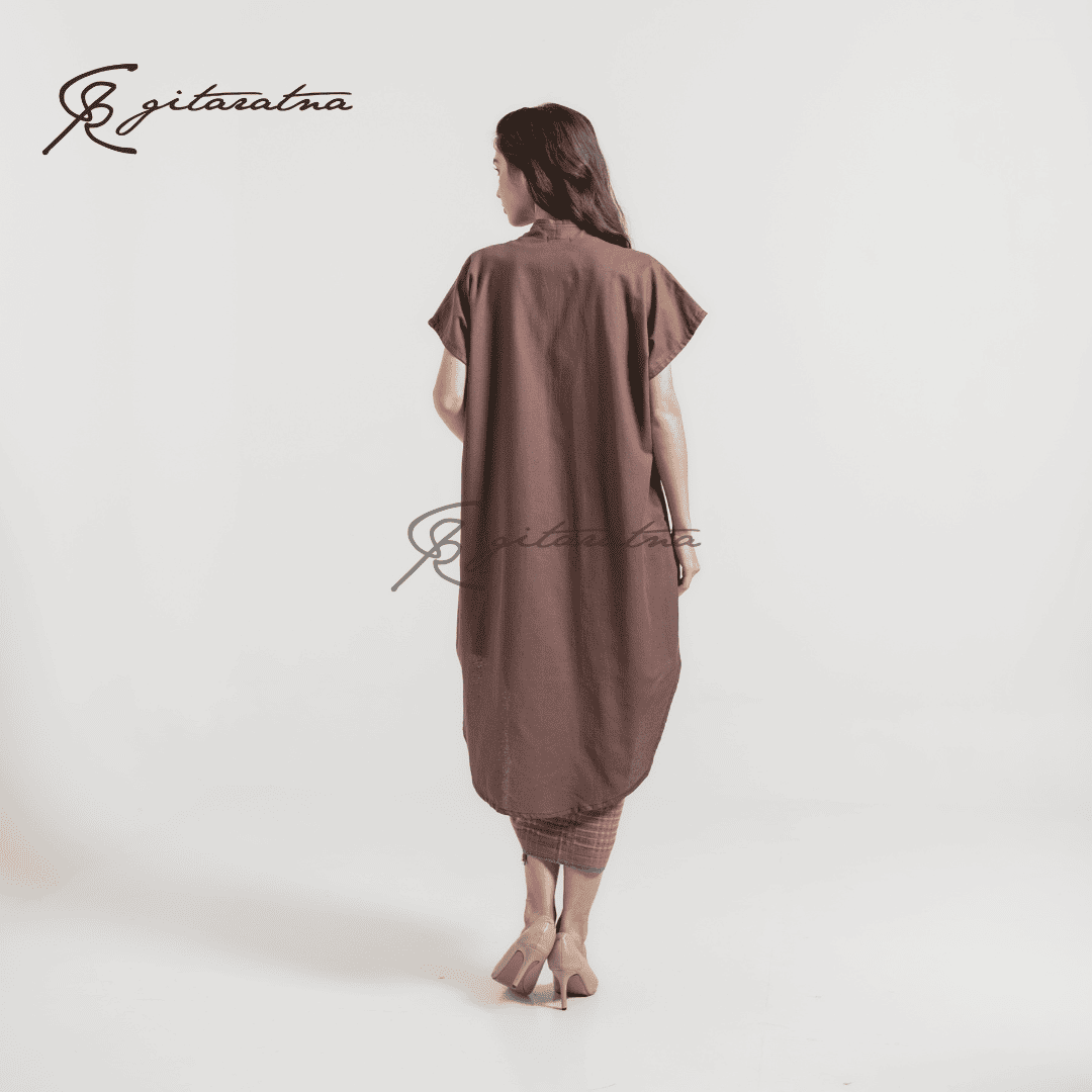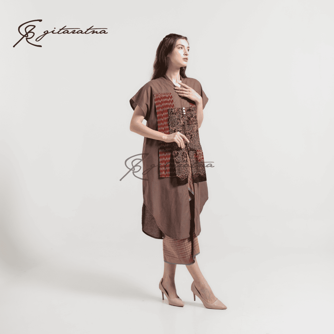 GITARATNA Meghana Outer Batik Tenun Atasan Kerja Wanita Varian Kopi Sleeveless