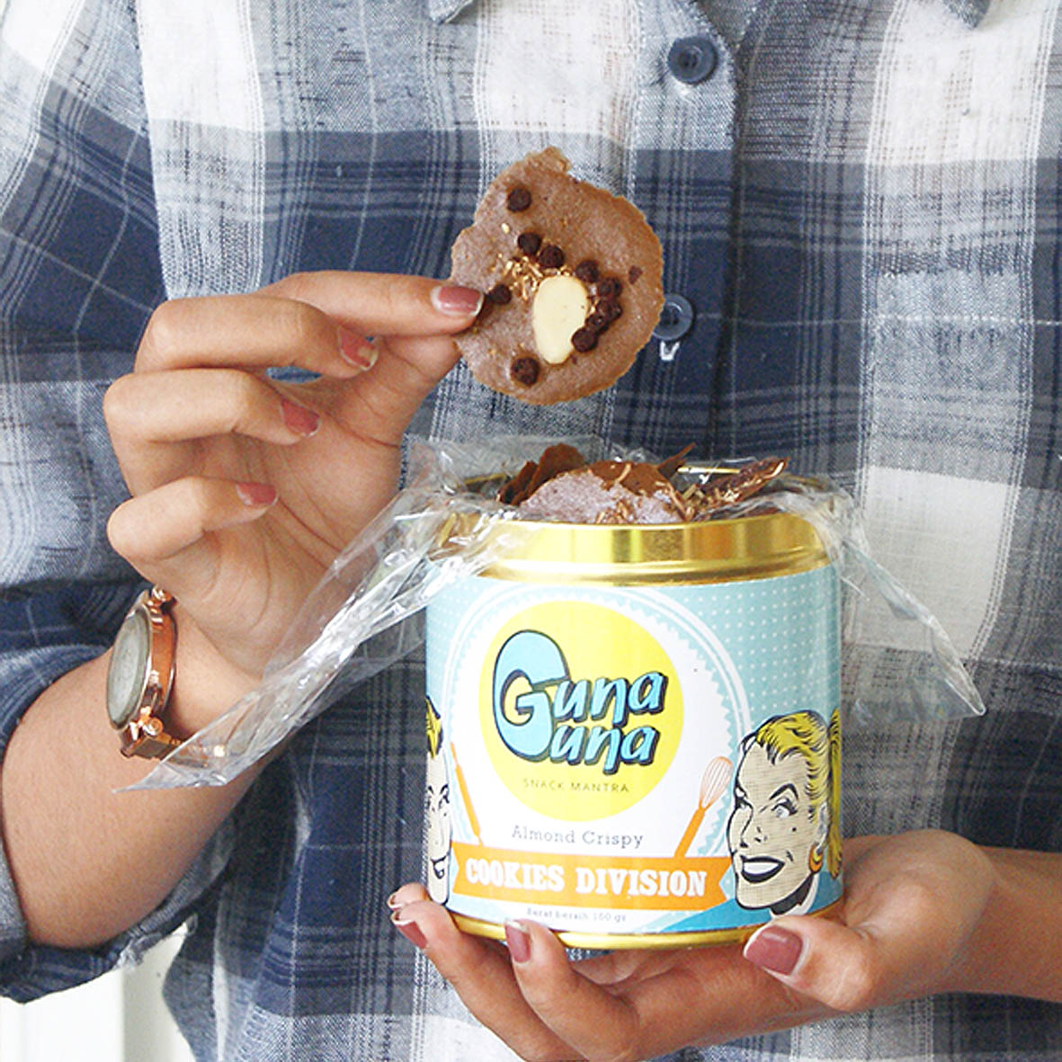 Cookies paling dicari jika ke Surabaya, andalan untuk oleh-oleh. Cookies dengan bentuk lempengan tipis, tekstur krispi, rasa yang manis dengan topping kacang almond. Tersedia dalam varian Cheese dan Chocolate. Menggunakan packaging kaleng, meminimalkan dari resiko remuk dan hancur.