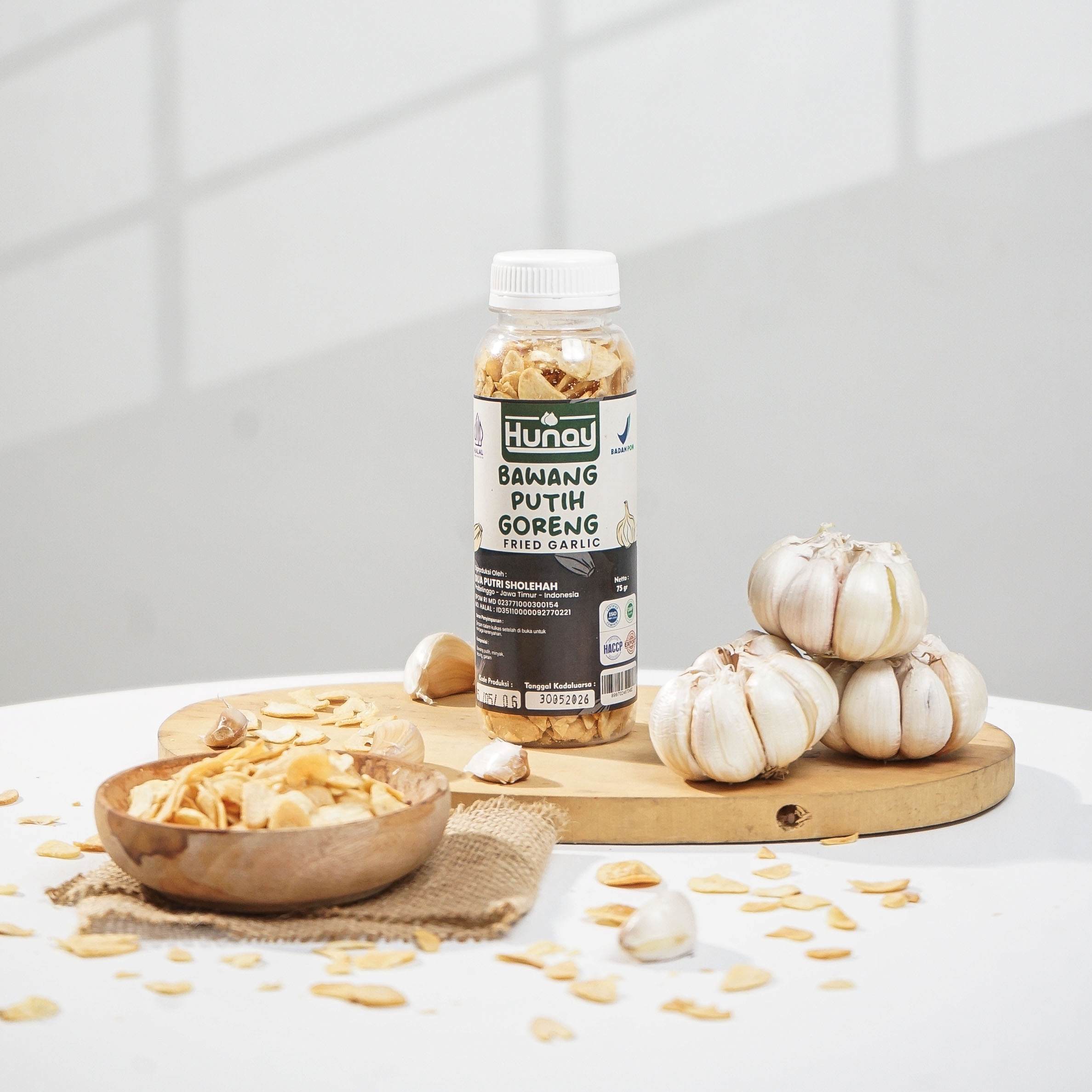 Bawang Putih Goreng Hunay adalah camilan renyah dan gurih yang dibuat dari bawang putih pilihan, diiris tipis dan digoreng dengan teknik khusus untuk menghasilkan tekstur renyah dan aroma khas yang menggoda. Cocok digunakan sebagai topping nasi goreng, mie, sup, atau pelengkap berbagai hidangan.