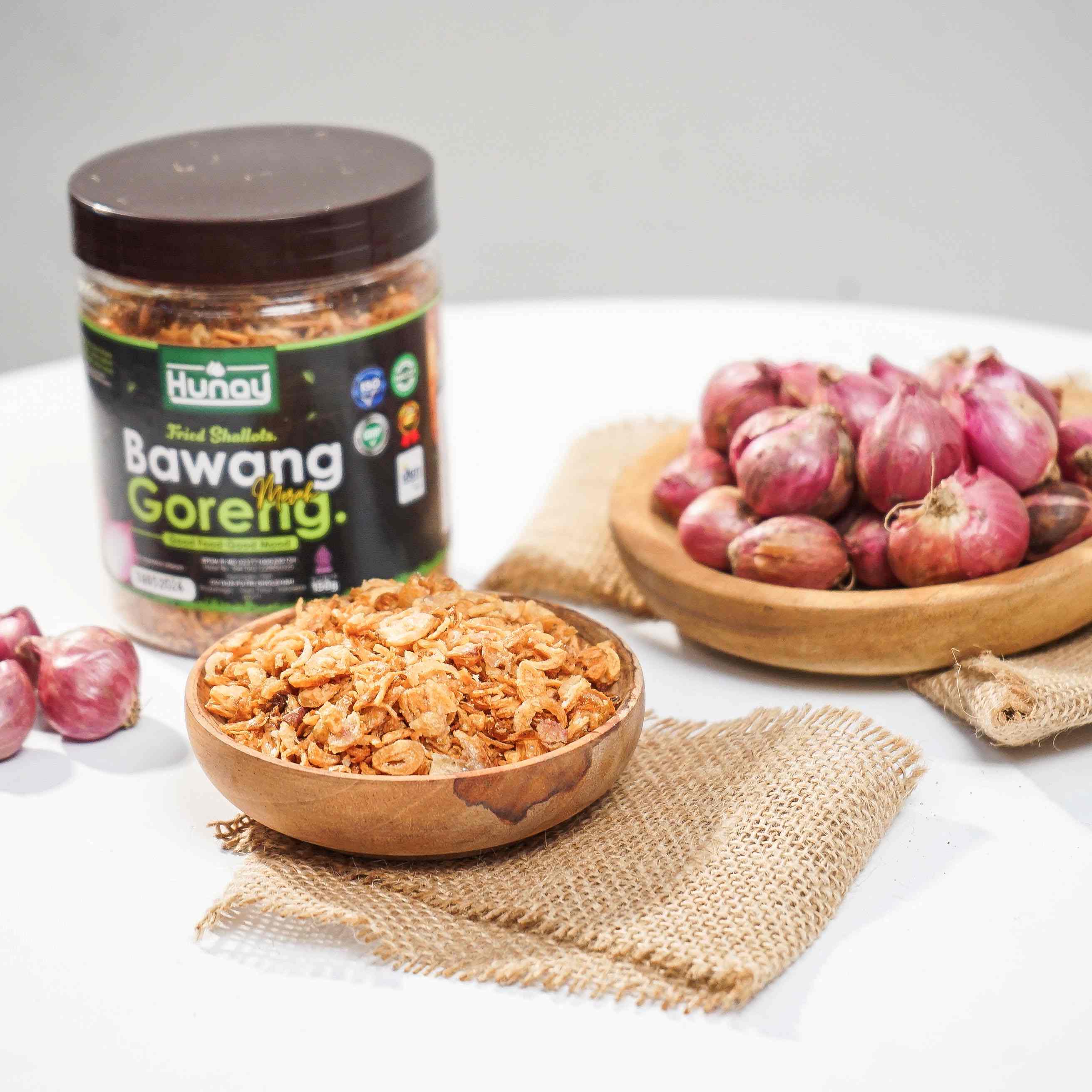 Bawang Merah Goreng Hunay dalam kemasan toples 150 gram adalah pelengkap hidangan khas Indonesia yang wajib ada di dapur Anda. Terbuat dari bawang merah pilihan, diiris tipis dan digoreng hingga renyah tanpa tambahan pengawet. Aroma khas dan kerenyahan alaminya menjadikan setiap masakan lebih istimewa.