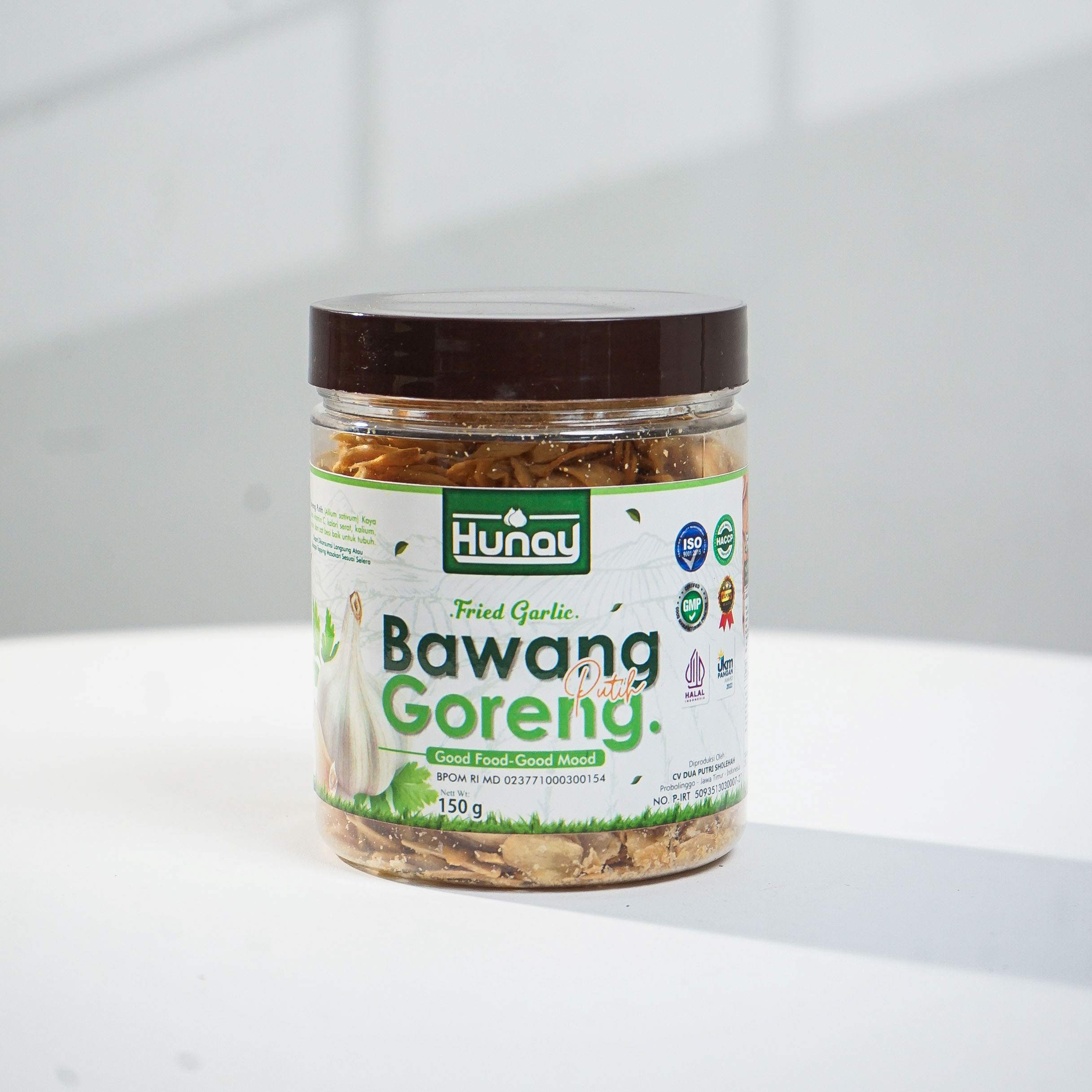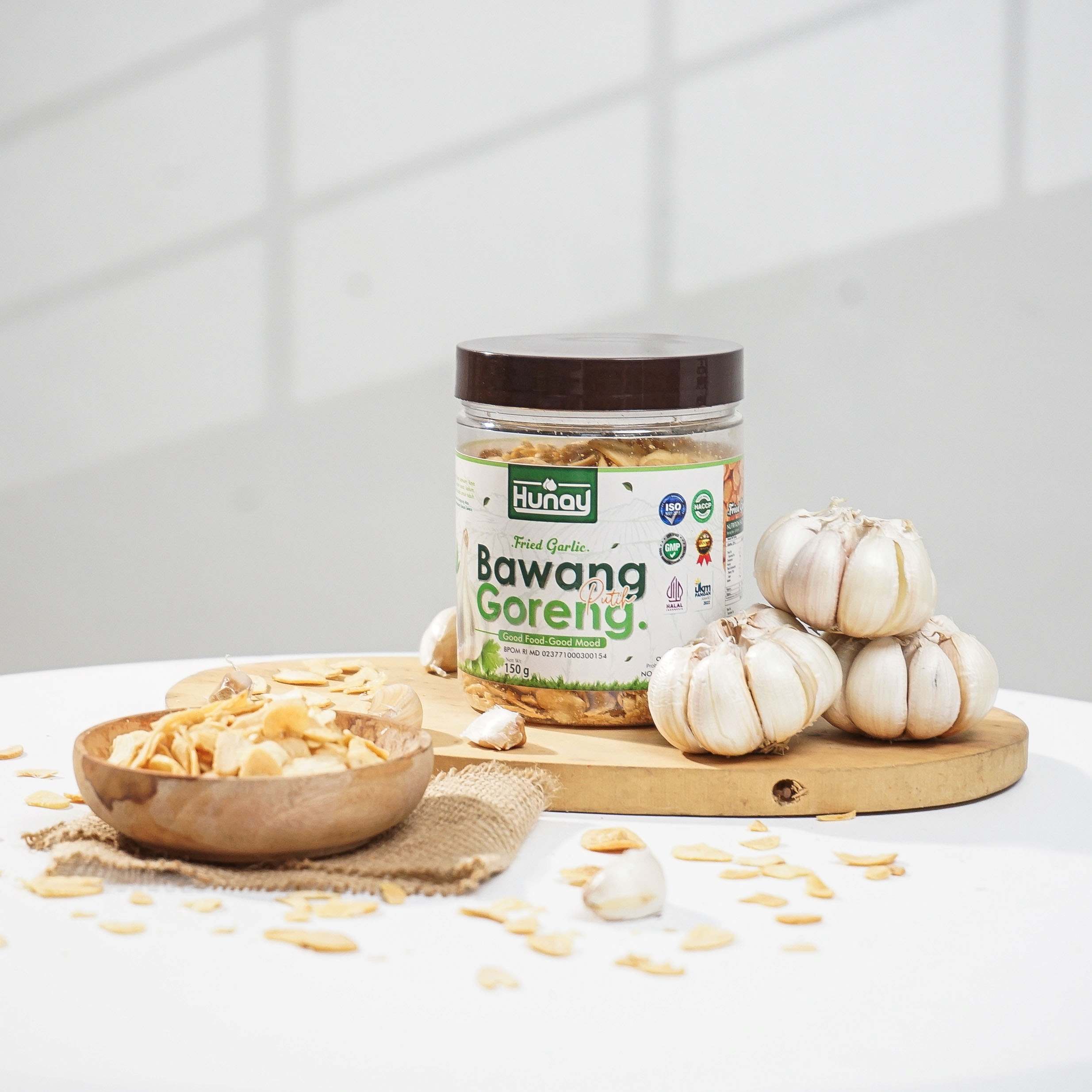 Bawang Putih Goreng Hunay dalam kemasan toples 150 gram adalah pelengkap makanan yang praktis dan lezat. Terbuat dari bawang putih asli yang diiris tipis dan digoreng hingga renyah tanpa bahan pengawet, menghasilkan aroma harum khas dan tekstur super kriuk yang meningkatkan cita rasa masakan.