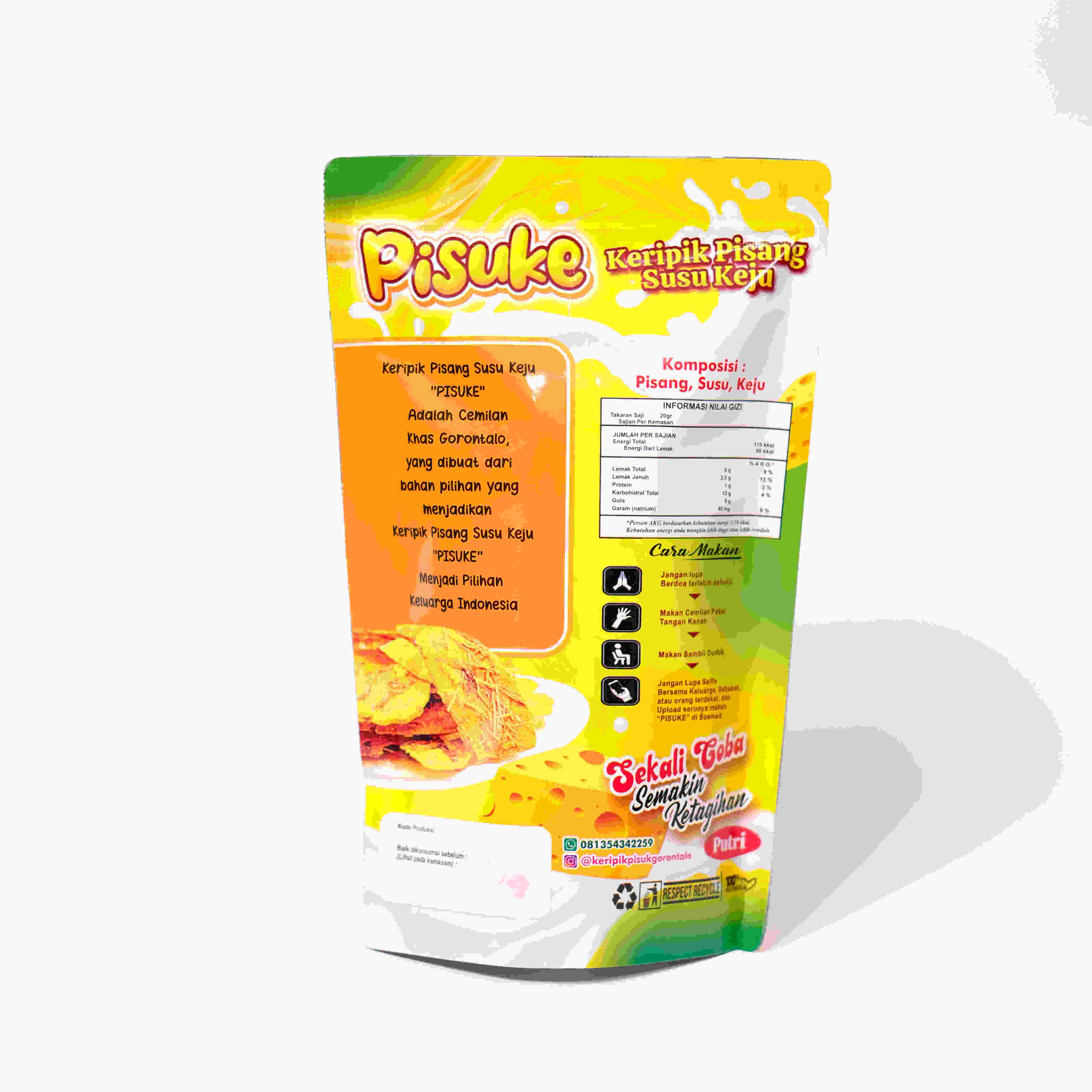 Keripik Pisang Susu Keju “PISUKE” adalah cemilan khas Gorontalo yang terbuat dari bahan pilihan yang menjadikan keripik pisuke menjadi pilihan keluarga Indonesia